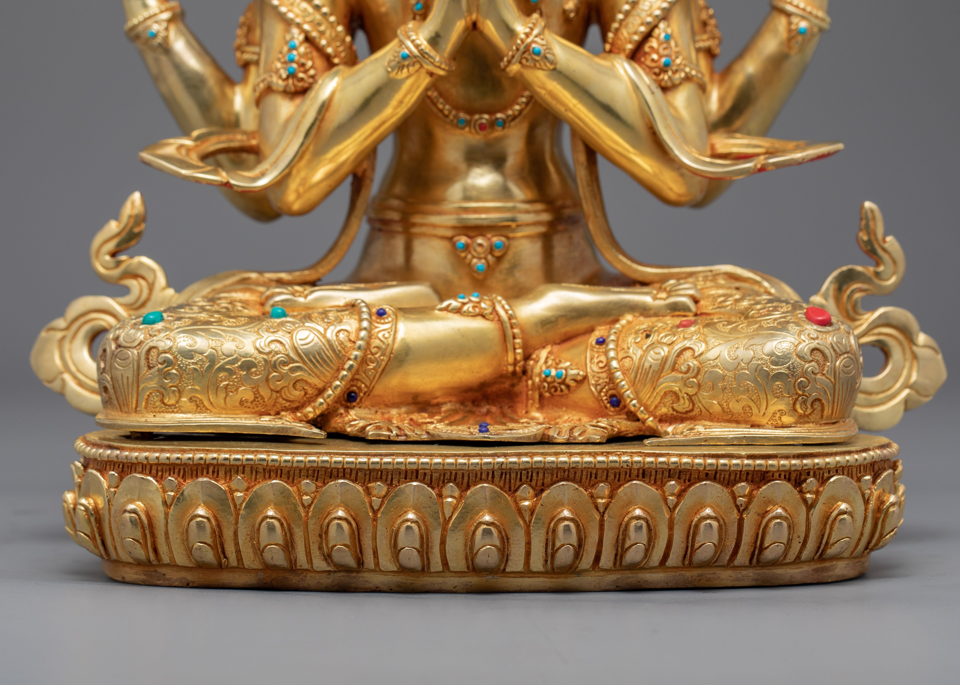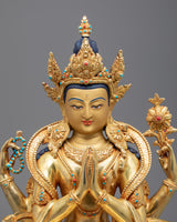 Religious Statue For Mantra Avalokitesvara | Gold Gilded Statue For Meditation