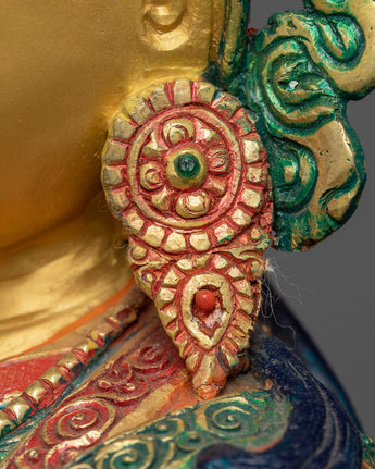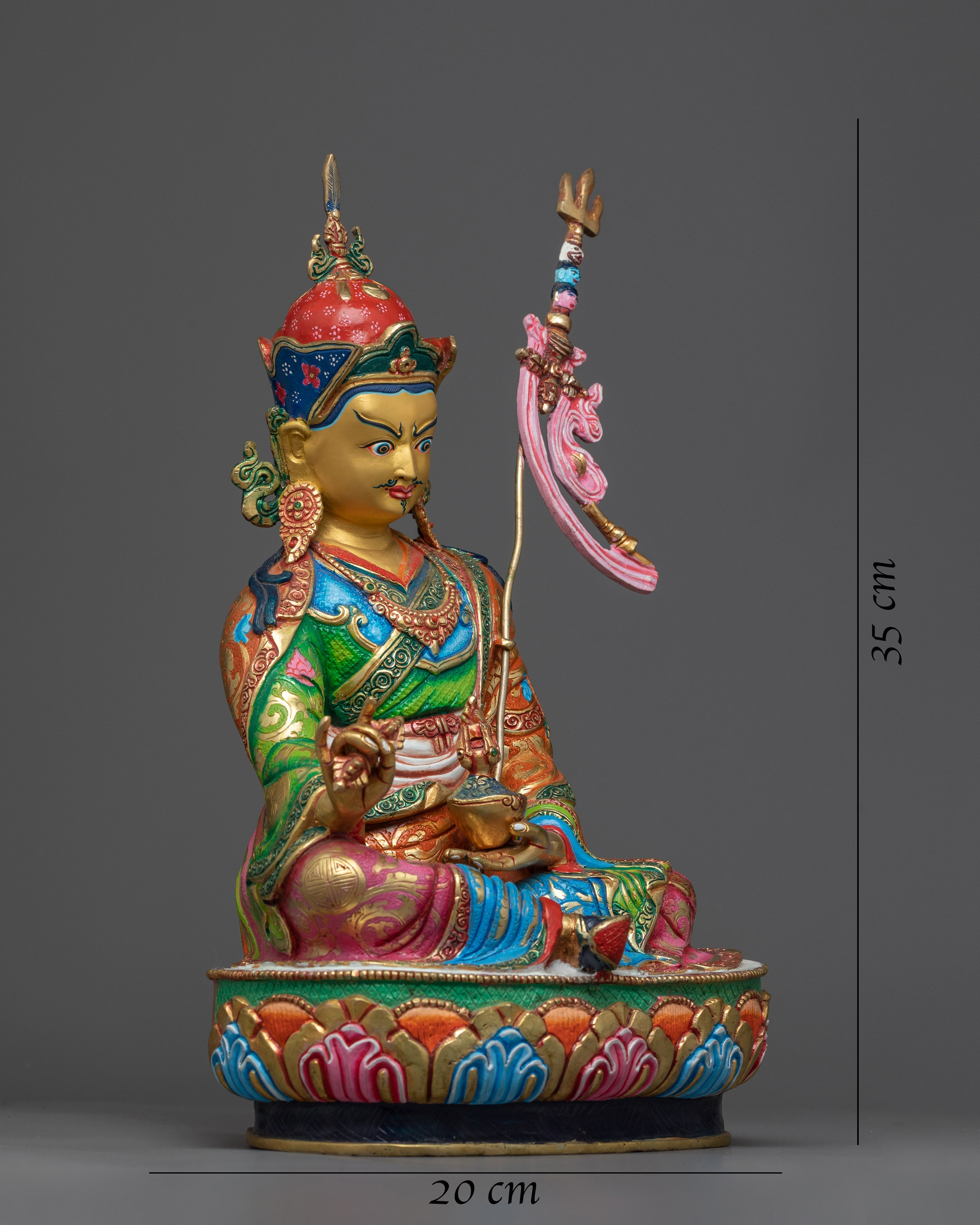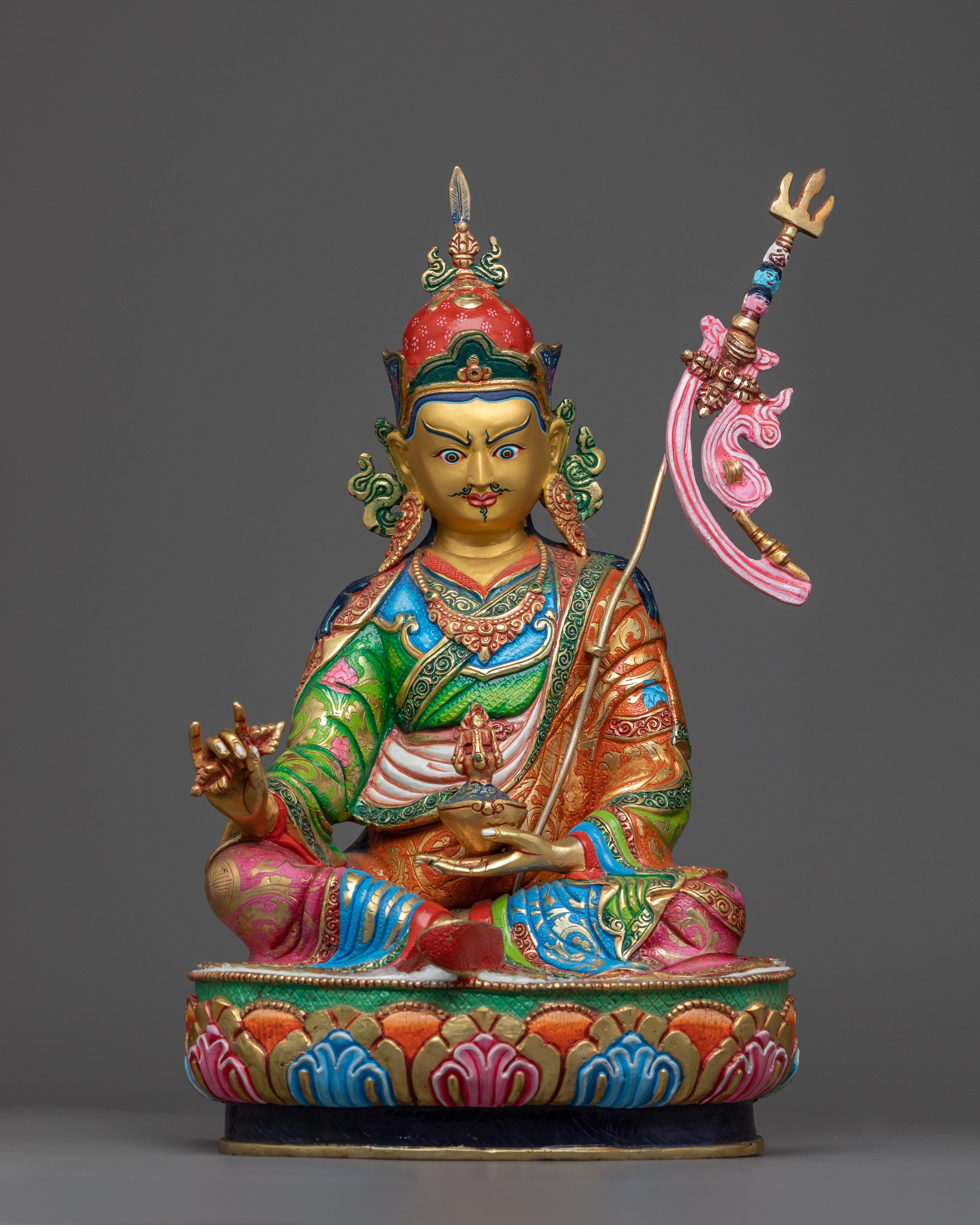Bring the revered Padmasambhava Rinpoche's presence into your room with this stunning statue, which bears witness to the great Guru's transformational teachings and guiding influence.