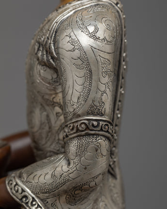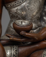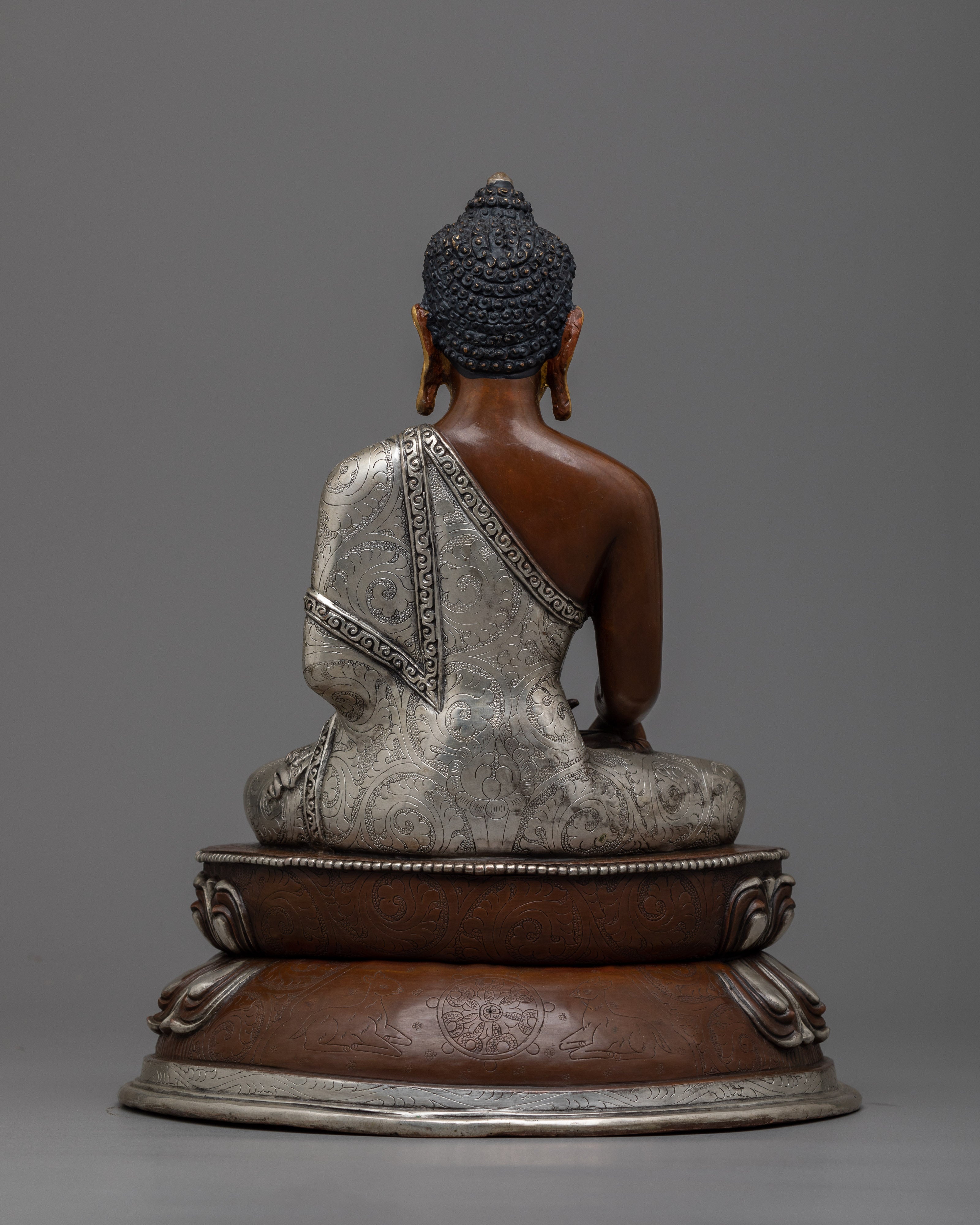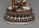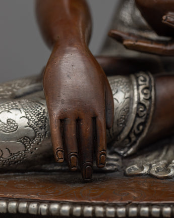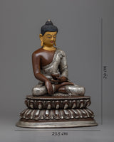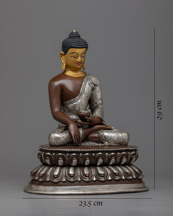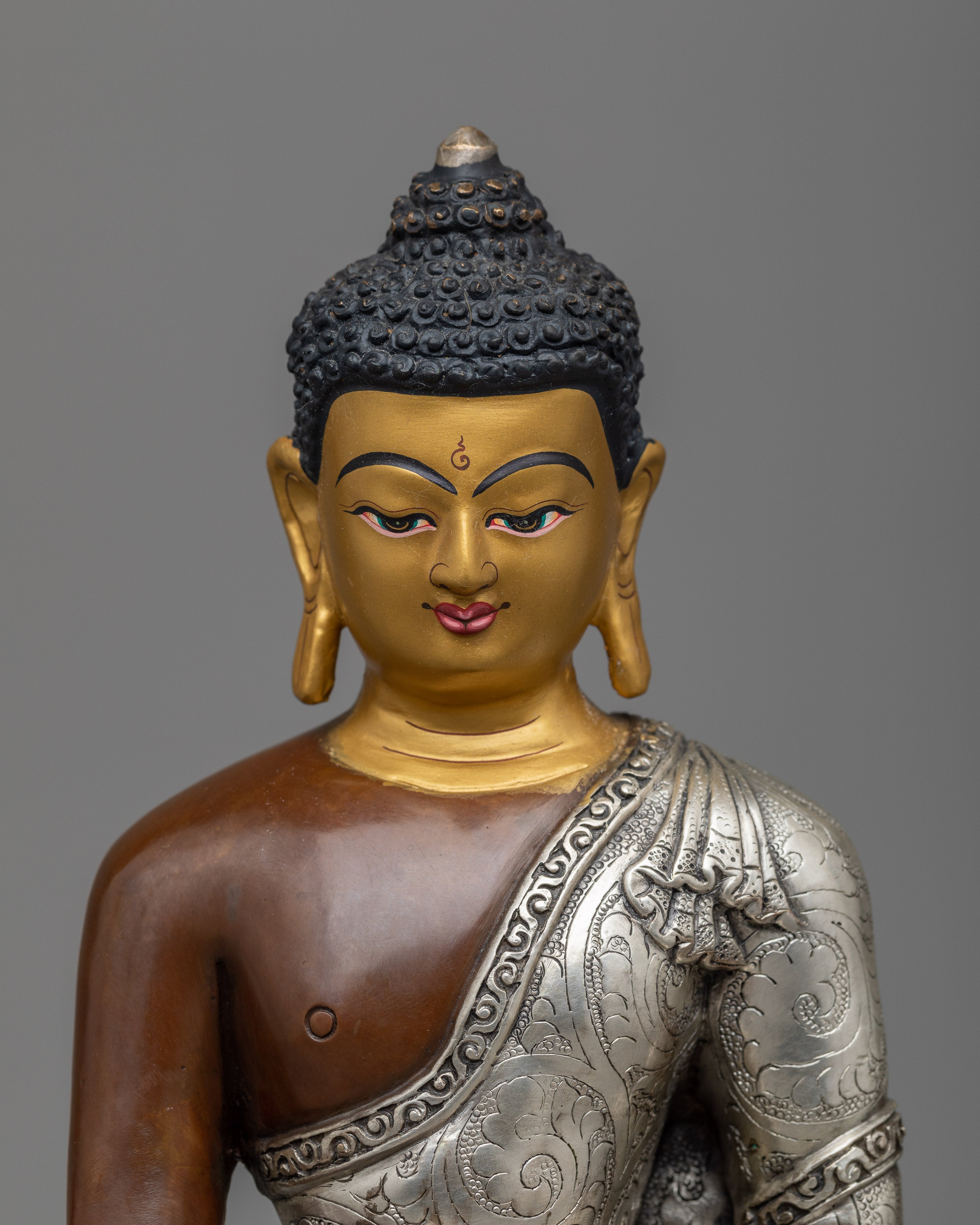 Handcrafted Statue of Sakyamuni Buddha with Silver Plated and Oxidized Copper Body