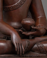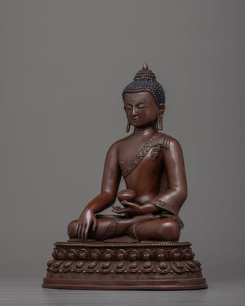 Our Sakyamuni statue is made of oxidized copper and has an enduring charm that mirrors the ageless wisdom of Buddha's teachings. The delicate elements of the statue are skillfully sculpted by talented Nepalese artisans to tell a story of enlightenment and spiritual rebirth. Despite its simplicity, the rusted copper figure exudes a subtle but profound beauty. Sakyamuni's tranquil expression is mirrored in the gentle glint of the copper, offering a physical reminder of the way to inner serenity.