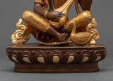 The Saraswati Statue, which is covered in delicate 24k gold gilding, emanates a spellbinding air of holiness. The goddess's magnificent grace and vibrancy are brought to life by the careful balancing of 24k gold and acrylic paintings. You invite Saraswati's wisdom and creative inspiration to beautify your surroundings as you welcome this artwork into your home.
