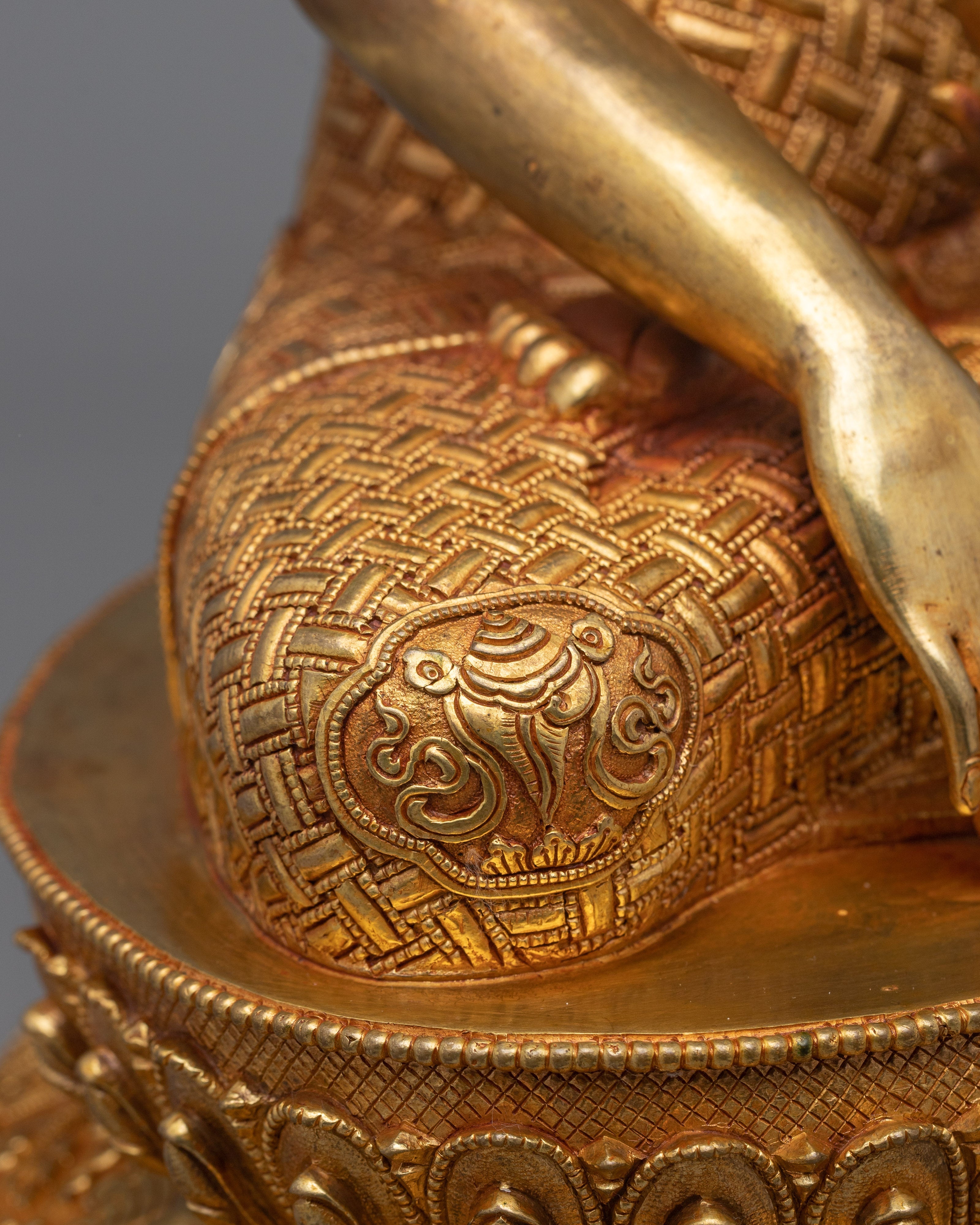 Experience the divine artistry of our Shakyamuni Buddha 24K Gold Gilded Figurine, which is precisely crafted from copper and embellished with sumptuous 24K gold gilding. Every element, from the calm expression to the elaborate attire, captures the profoundly spiritual essence of Shakyamuni Buddha. This statue exudes a sense of spiritual serenity and tranquility, attracting contemplation and devotion. It is enhanced with bright gold and acrylic paintings. Every element of the figurine is in harmony with the eternal teachings of compassion and enlightenment imparted by Shakyamuni Buddha thanks to the exquisite craftsmanship.