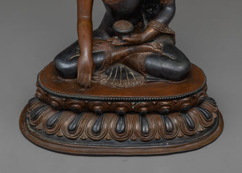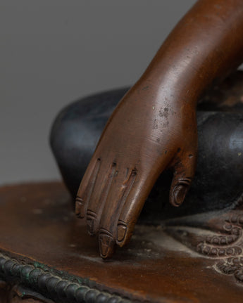 The Shakyamuni Buddha Copper Statue will take you to the center of spiritual awakening. This item, expertly crafted from oxidized copper, radiates an atmosphere of age-old knowledge and profound serenity. Every curve and line of this statue, which comes from the rich legacy of Nepalese workmanship, exudes the Buddha's eternal teachings. The oxidized finish gives the antique a legendary aspect, implying years of dedication and reverence.