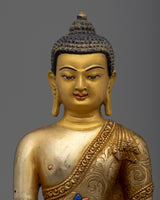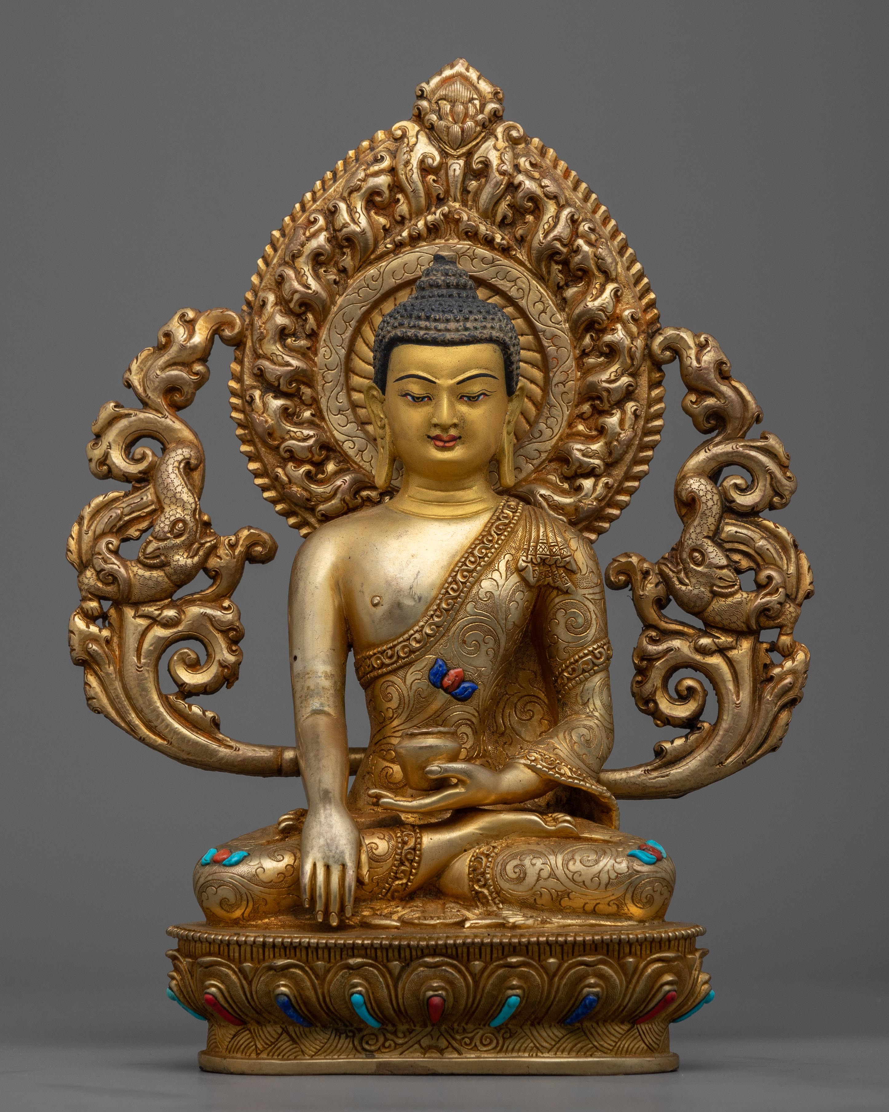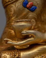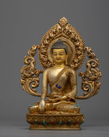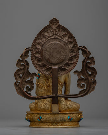 With our Shakyamuni Buddha Religion statue, which stands at 11" with an 8.2" base, you can go on the path of awareness. This statue, which embodies Buddhist teachings, is a representation of enlightenment and serenity. This sculpture, which was painstakingly made from a copper body and embellished with 24K gold gilding and acrylic paintings, is a testament to the unmatched talent of Nepalese artists.