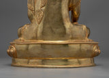 Presenting the Shakyamuni Buddha Shrine Sculpture, a magnificent representation of the Buddha's creator created to foster a profound sense of spiritual connection. This sculpture, which stands 12.9 inches tall with a 9-inch base and weighs 4.54 kg, is a powerful depiction of the Bodhi tree, where Siddhartha Gautama attained enlightenment. This sculpture, which is made of a copper body and is embellished with 24K gold gilding and elaborate paintings in gold and acrylic, perfectly embodies Shakyamuni's teachings on enlightenment, compassion, and the removal of suffering.