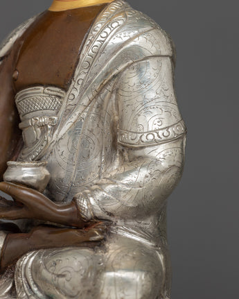 Shakyamuni Buddha Silver-Plated Serenity Statue | Traditional Artwork