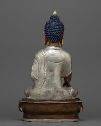 Elegant Reflection of Enlightenment, Shakyamuni Buddha Silver-Plated Statue