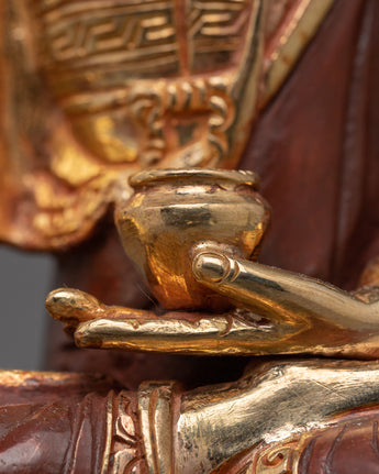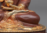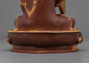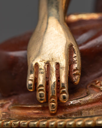 This Shakyamuni Buddha Statue will add a touch of holiness to your shrine while also inspiring and deepening your spiritual practice. At 8.4 inches tall, this wonderfully proportioned figurine is ideal for personal altars or intimate meditative spaces. The sculpture, cast from oxidized copper, embodies the noble material's ageless strength and resilience. The magnificent 24K gold plating, along with delicate gold and acrylic paintings, conveys the transcendent essence of the Awakened One, making it a treasured addition to any shrine.