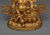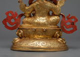 This statue is expertly carved from copper and embellished with 24K gold gilding, highlighting the delicate features. The gold and acrylic paintings enhance the statue's visual appeal, bringing to life Shanglon Dorje Dudul's formidable shape. His commanding posture and intricate features reflect his duty as a defender and guardian, making this statue not only a beautiful work of art but also a symbol of strength and protection.