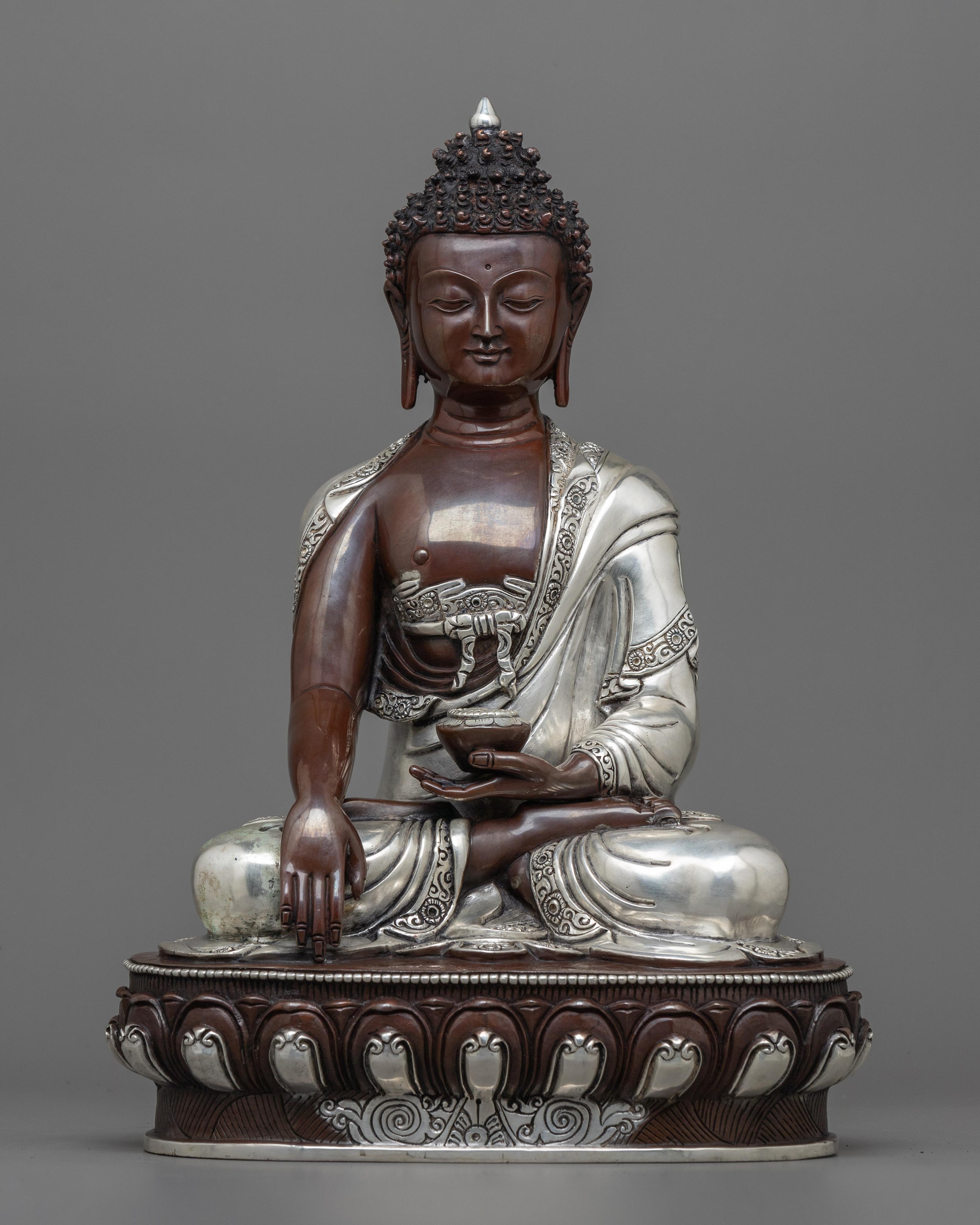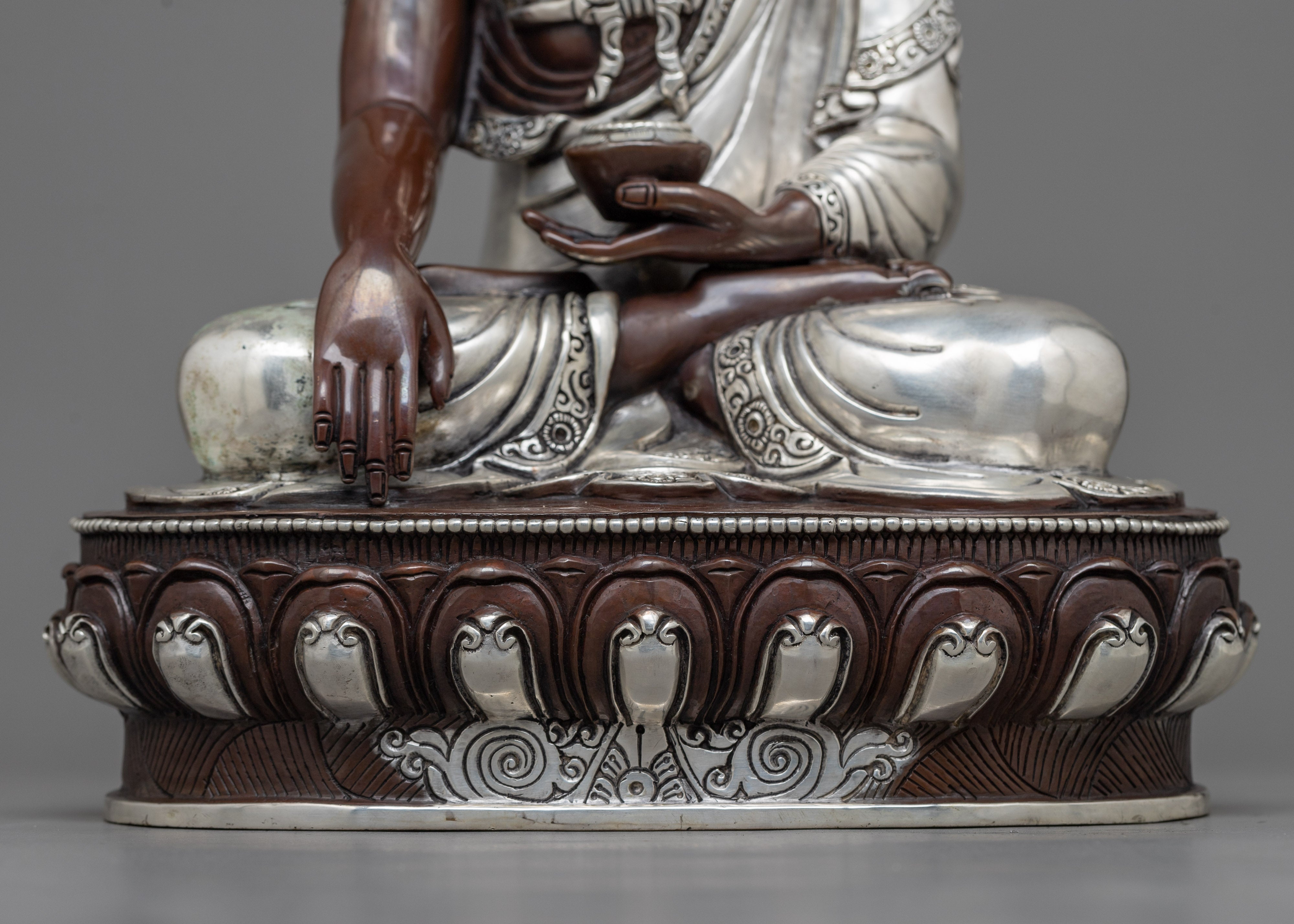 Silver Plated Shakyamuni Buddha Statue | Handmade Himalayan Artwork