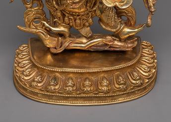 Mahakala is a symbol of bravery and strength; invite its protective presence into your holy area. In your living room or in your meditation space. This statue reminds us of Mahakala's protecting capabilities with its detailed craftsmanship and strong aura. May its presence give you the courage and tenacity to confidently traverse life's journey.