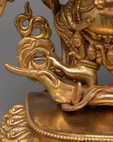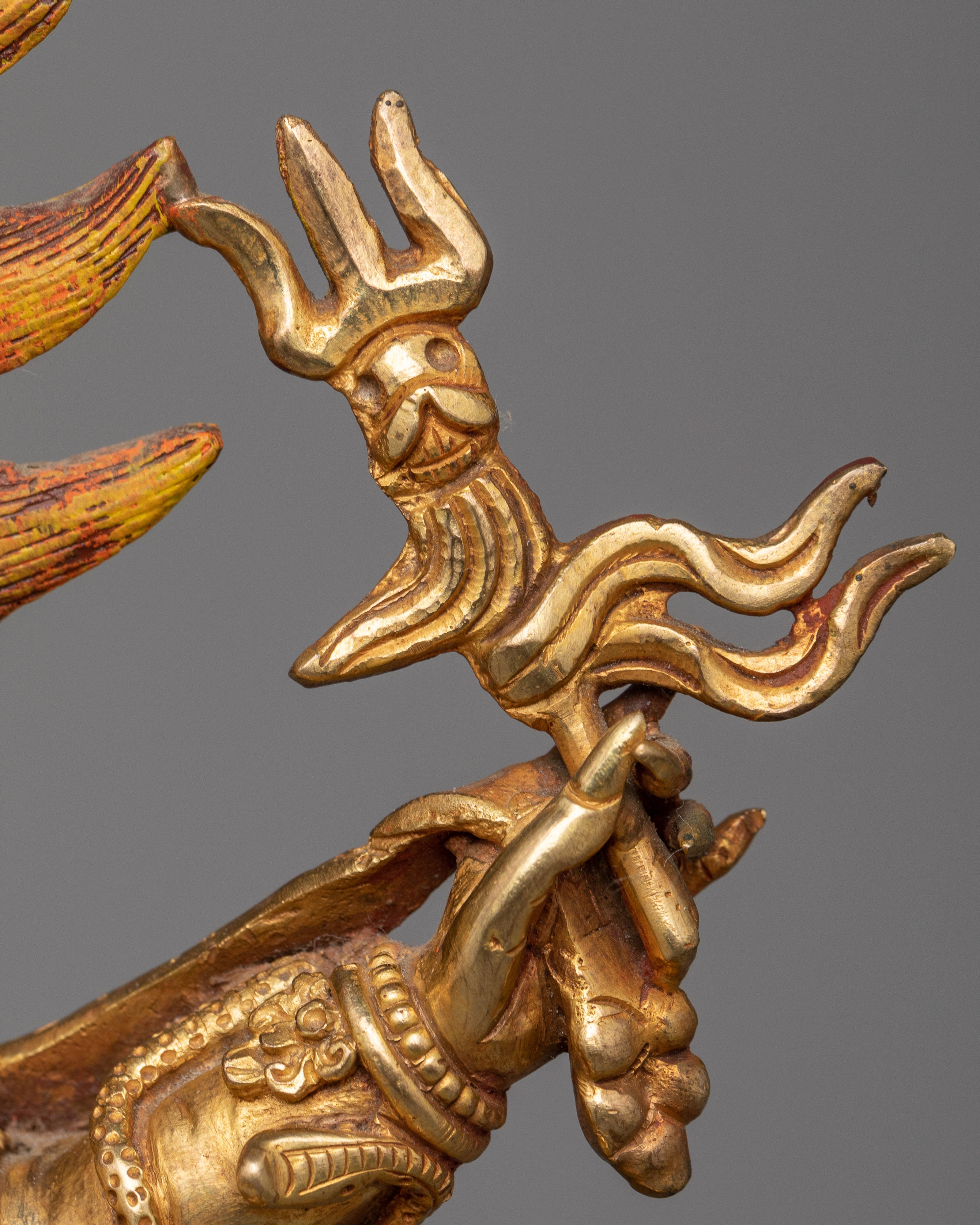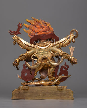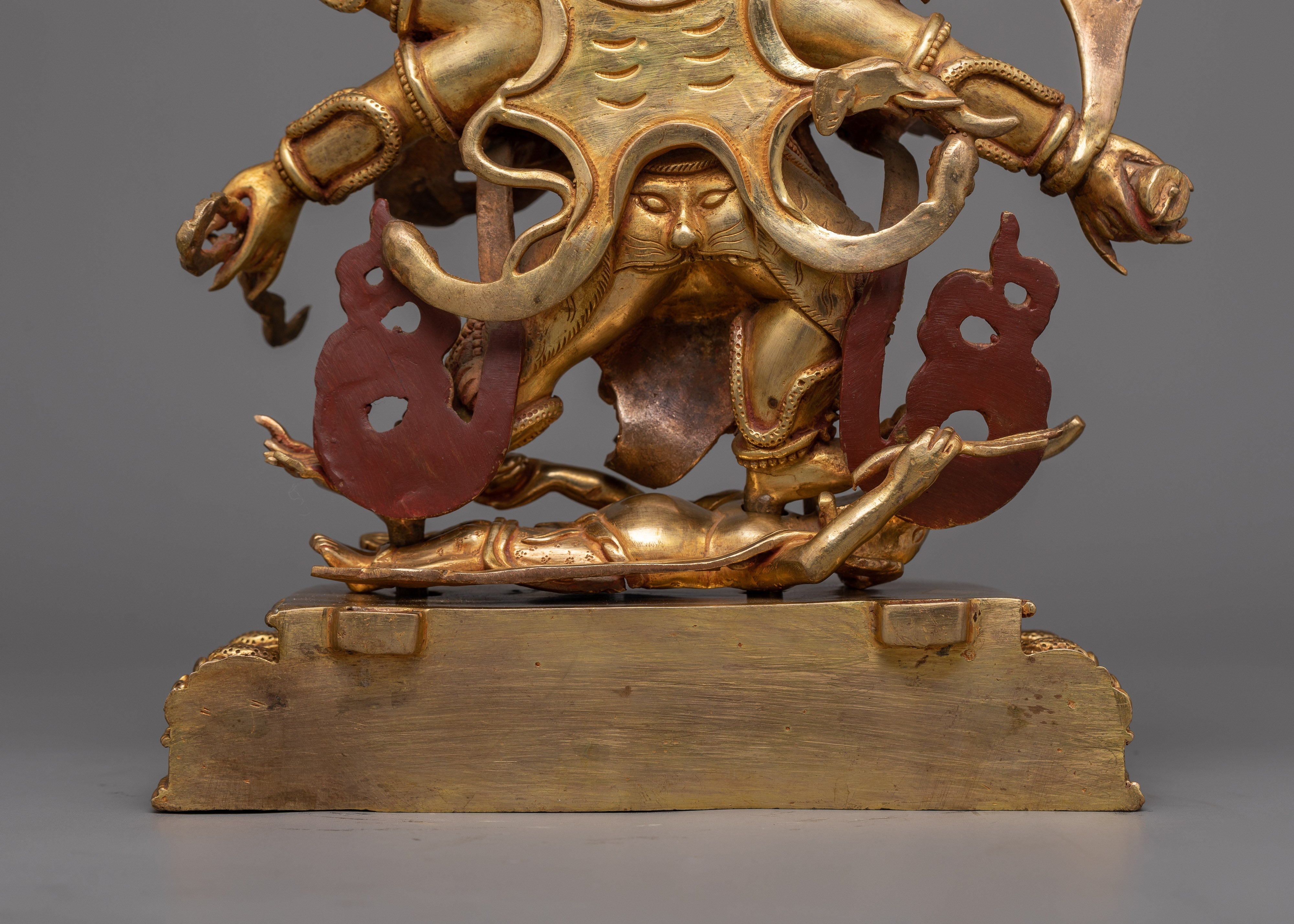 The Six-Armed Deity Mahakala Statue is the embodiment of divine protection. Learn more about it. This statue exudes strength and grace since it was painstakingly crafted and embellished with 24K gold-gilded embellishments, gold and acrylic paintings, and a copper body.