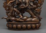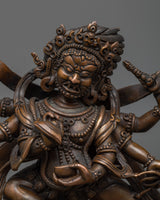 Handmade Copper Sculpture of Six-Armed Mahakala, The Great Protector of the Dharma.
