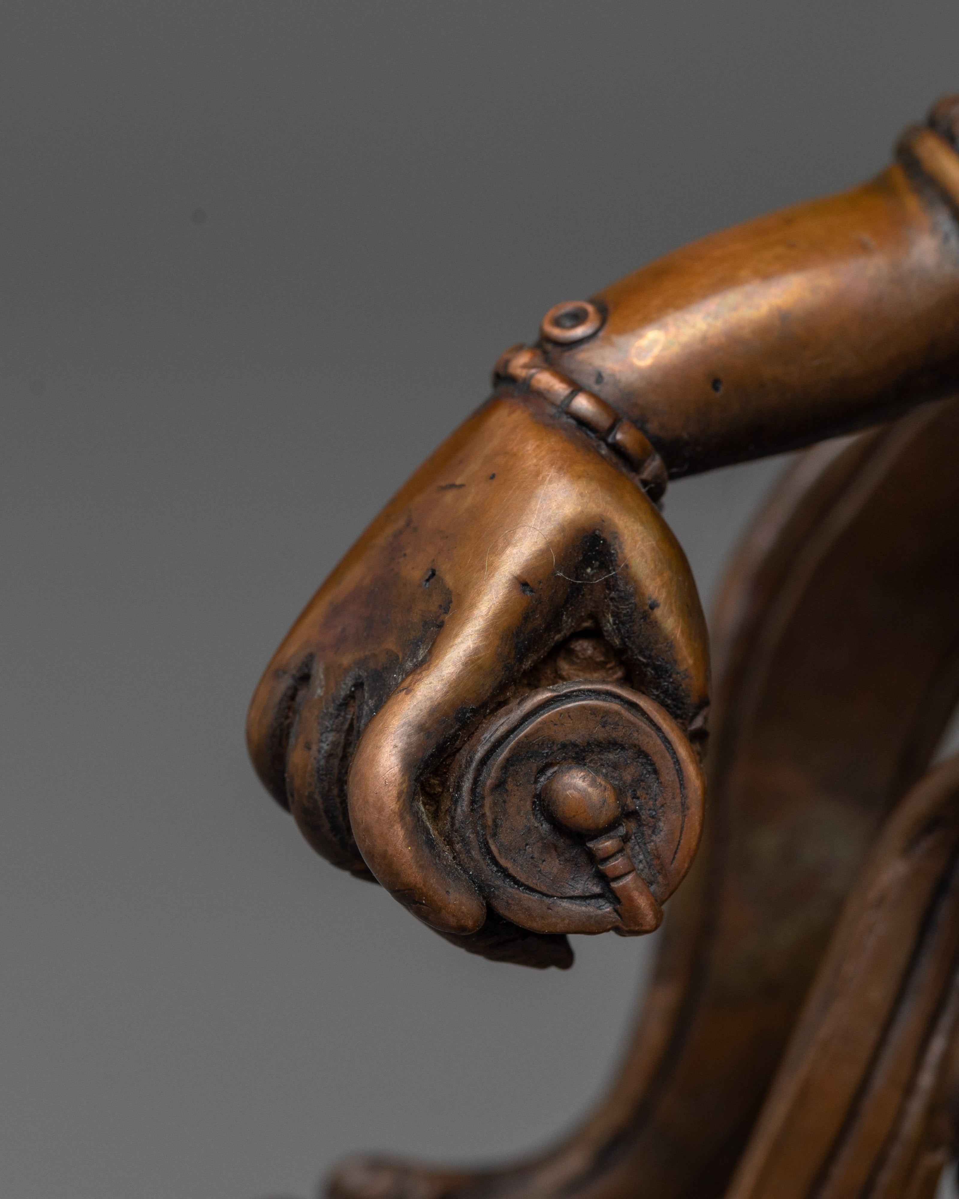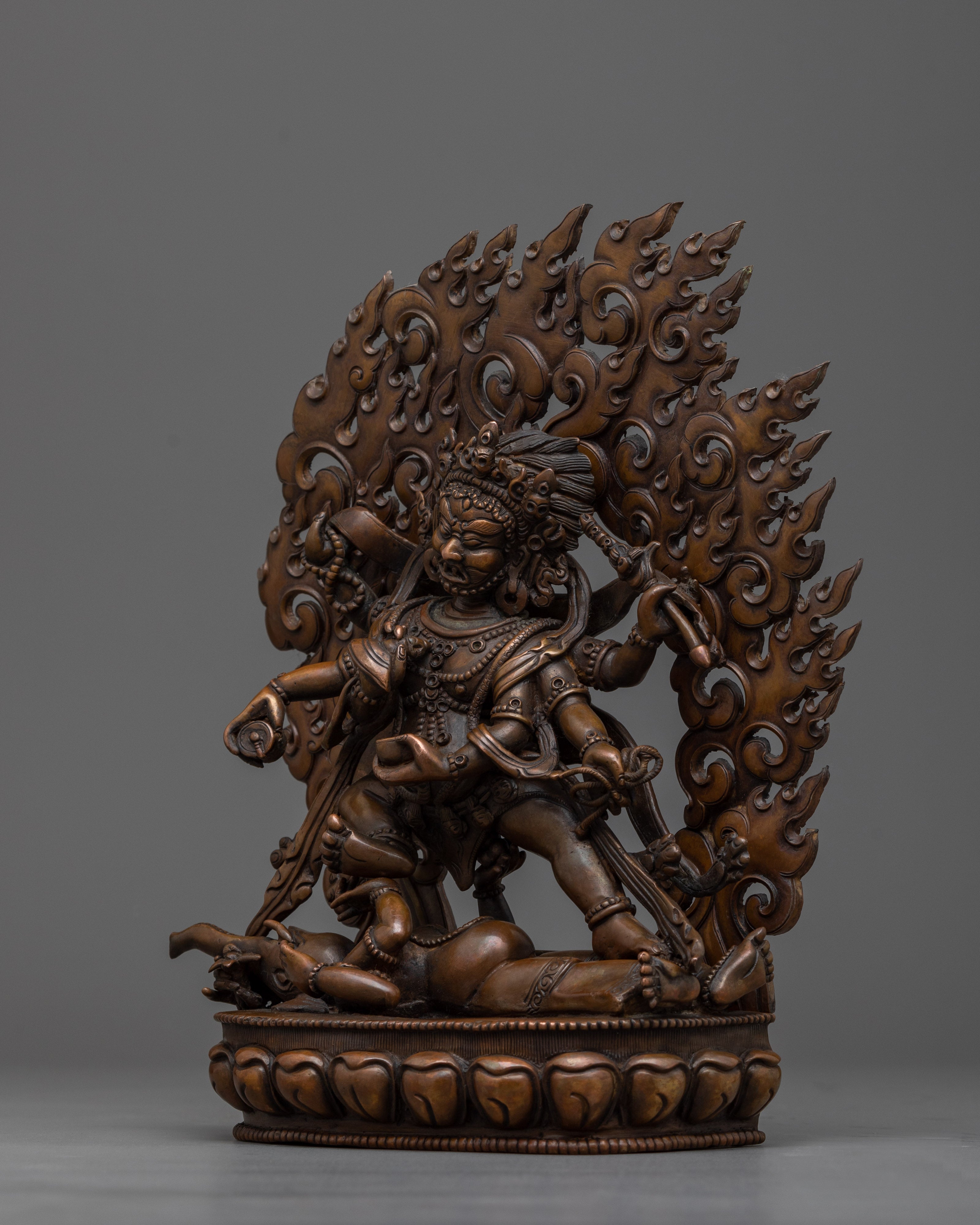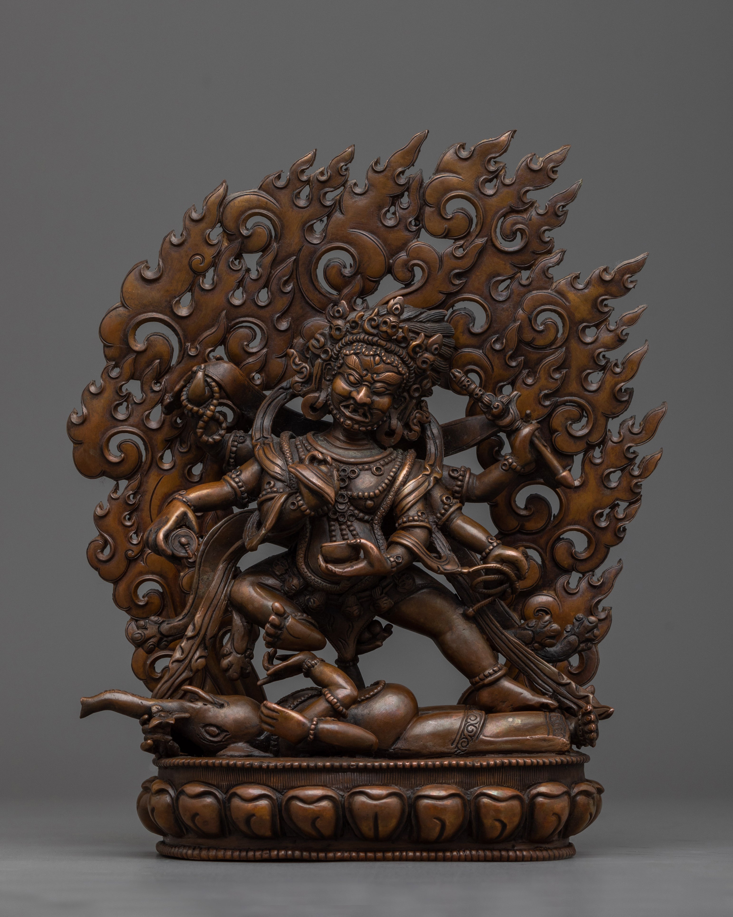 In the Buddhist tradition, the Six-Armed Mahakala is adored as a fearsome deity who represents the transformational force of spirituality. Its aggressive yet protective nature helps individuals cut through the hurdles and negativities that limit their spiritual growth. This deity represents a tremendous energy that aids in the cultivation of courage, protection, and a greater awareness of oneself, guiding you along the road of wisdom and enlightenment.