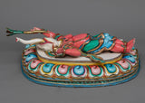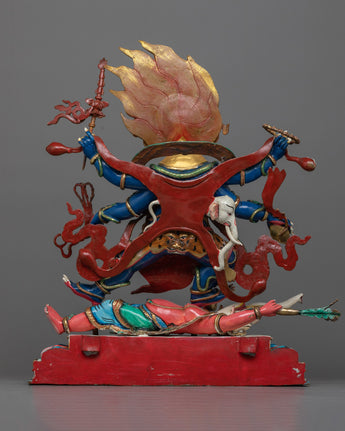 Our Six-Armed Mahakala Statue is a powerful image of strength and protection in Vajrayana Buddhism. At 27.5 inches tall, this sculpture is a monument to spiritual resilience and guardian force. This sculpture wonderfully captures Mahakala, the deity noted for his fearsome form and six arms, making it a meaningful addition to any shrine or meditation place.