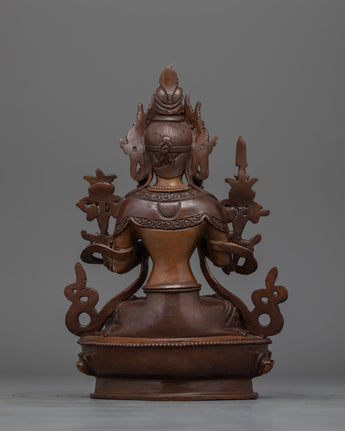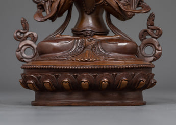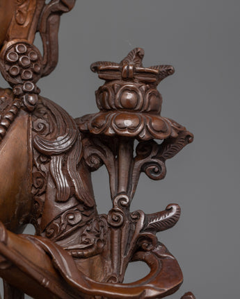 Manjushri is depicted holding his flaming sword in his right hand, representing the cutting of ignorance and the illumination of truth. His left hand gently holds a lotus bloom, symbolizing the blossoming of wisdom and purity. His tranquil look shows both knowledge and compassion, embodying the balance between intellectual clarity and sympathetic understanding. This Manjushri Figurine is ideal for altars, meditation places, or as a gift for individuals looking for spiritual guidance.