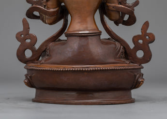 Manjushri, the Spiritual Wisdom Figure, is revered as the Bodhisattva of Wisdom in Buddhist tradition symbolizing the ability to dispel ignorance and reveal the ultimate truth. This intricately handmade statue, measuring 8.9"/22.5cm (Height) x 6.3"/16cm (Base) and weighs 1.67 kg, is made of oxidized copper and features superb detailing that adds to its ageless appeal.