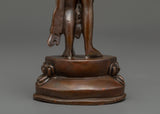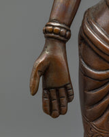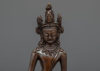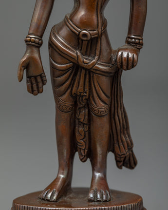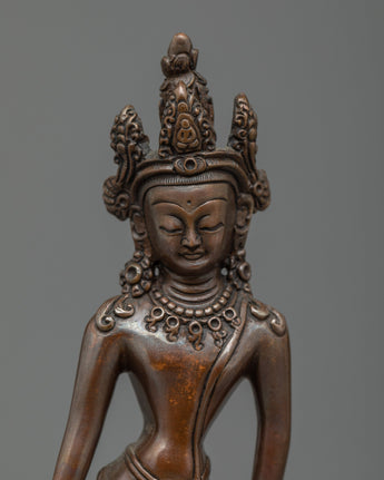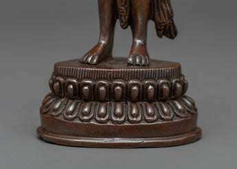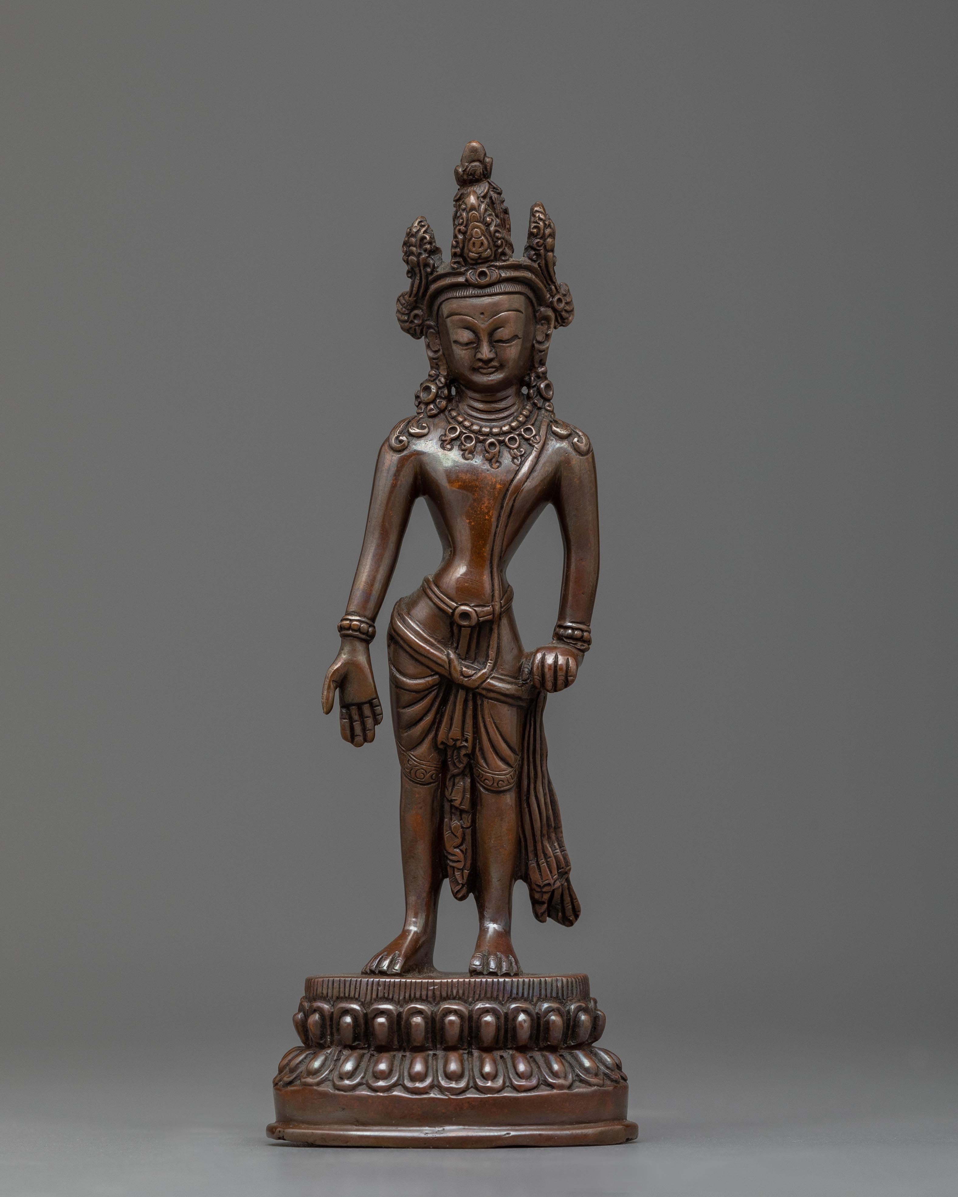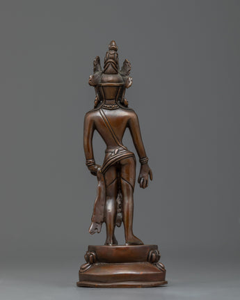 Unveiling the Standing Chenrezig Avalokiteshvara statue, a brilliantly carved portrayal of one of Buddhism's most respected Bodhisattvas' infinite compassion. Its small stature, made of oxidized copper, is countered by its profound spiritual meaning and meticulous craftsmanship. Perfect for adorning modest altars, meditation corners, or any location that needs a touch of divine compassion.