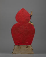 The many green and red jewels skillfully inlaid throughout the body, however, are what truly make this monument a visual marvel. These jewels boost not just its aesthetic appeal but also its spiritual resonance. The gleaming luster of 24k gold, mixed with colorful acrylic paintings, adds to its grandeur, making it a treasure for any fan or aficionado.