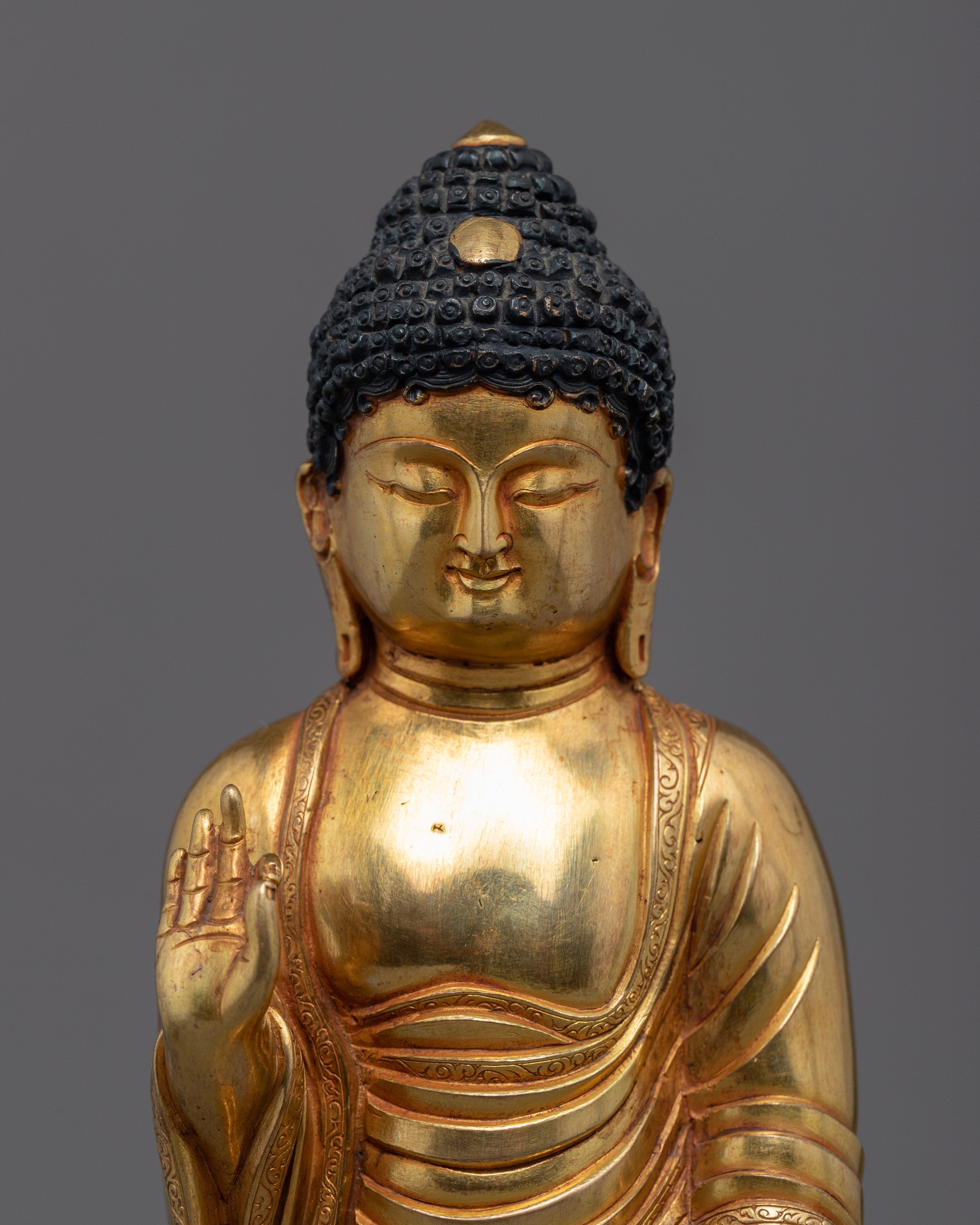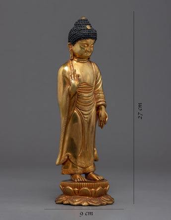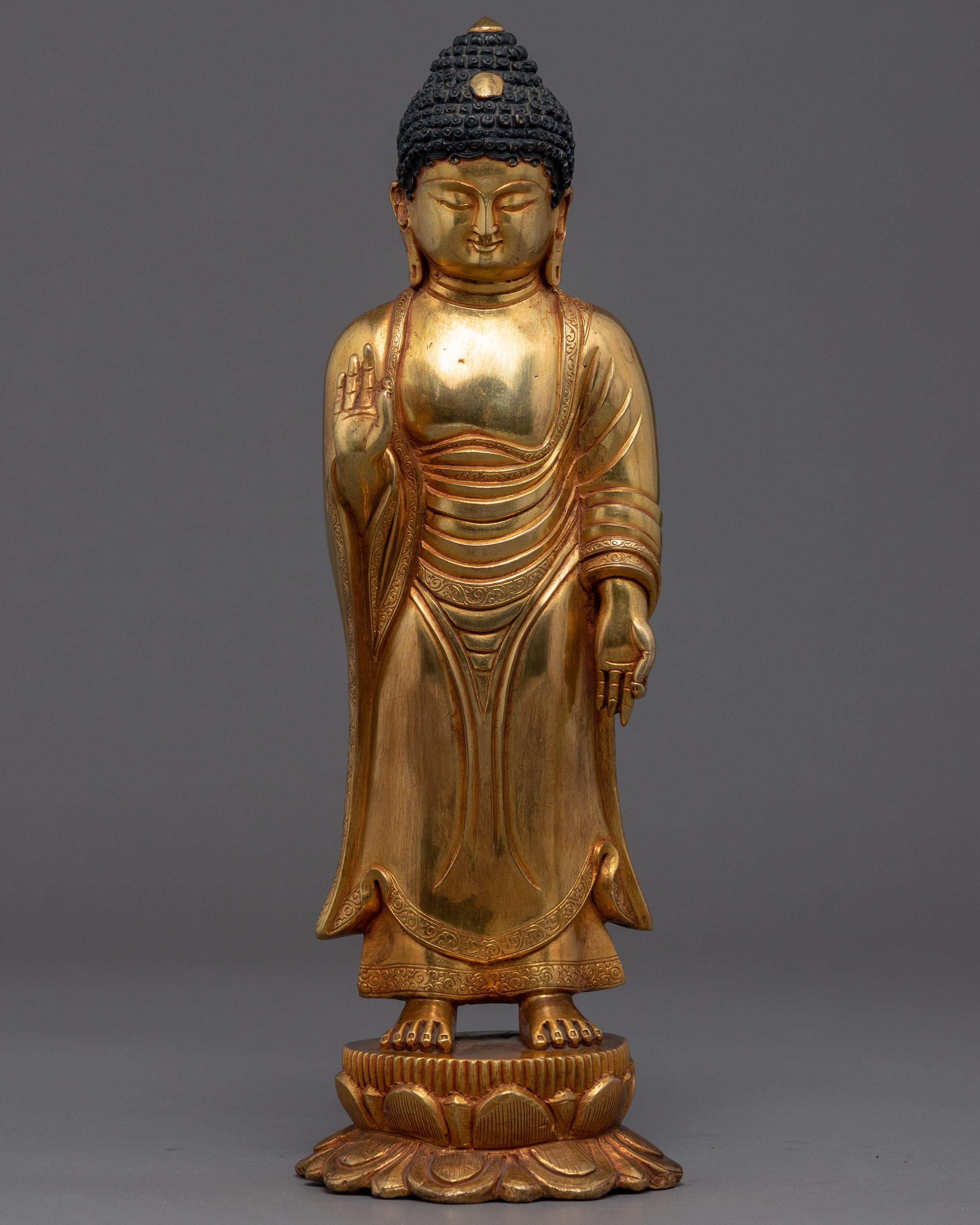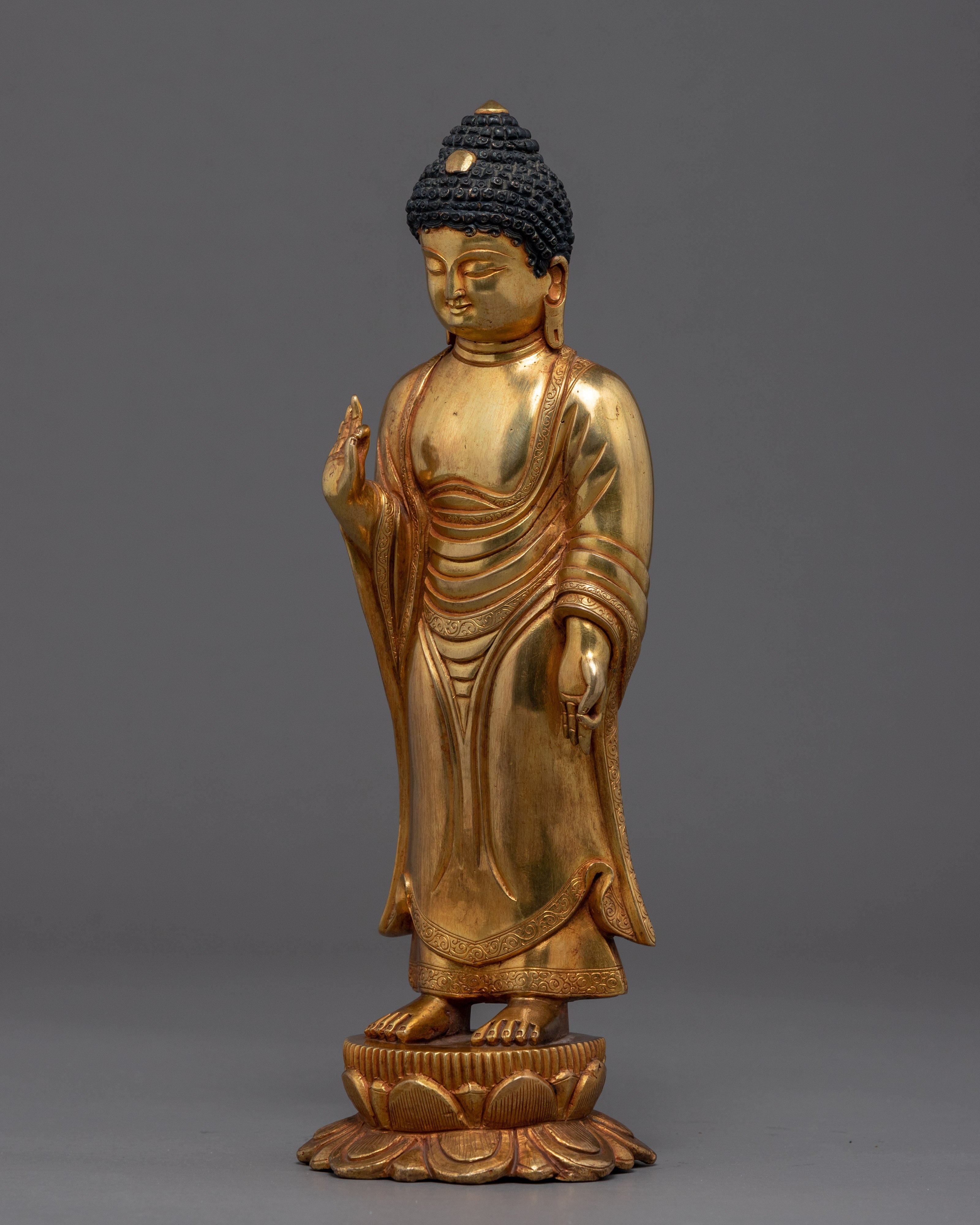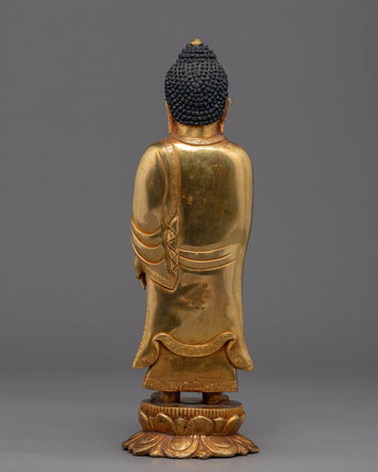 Standing Shakyamuni Buddha Statue | Gold Glided Traditional Art