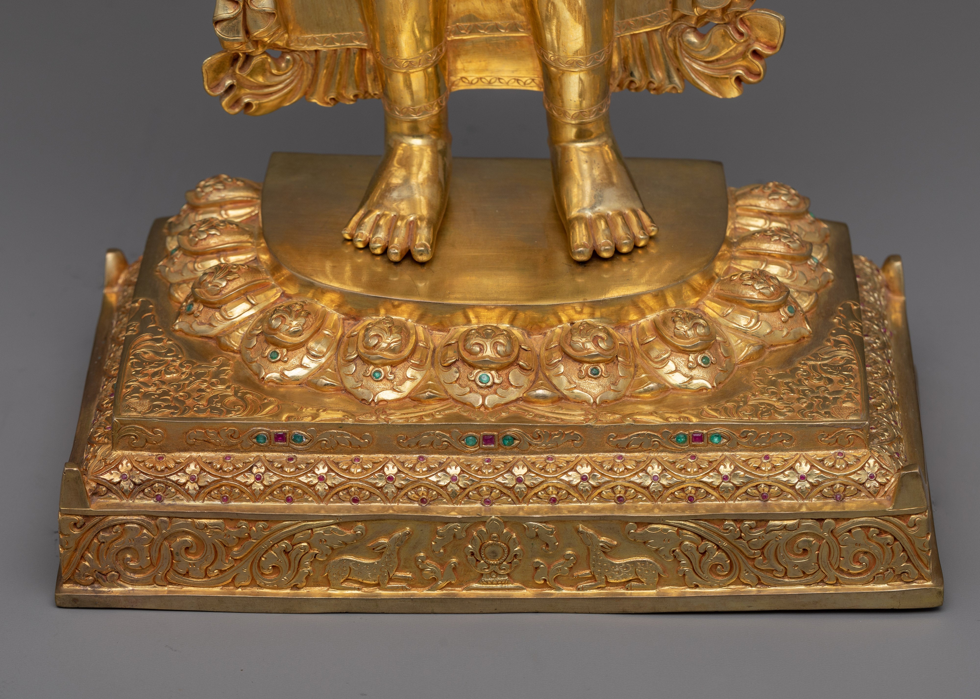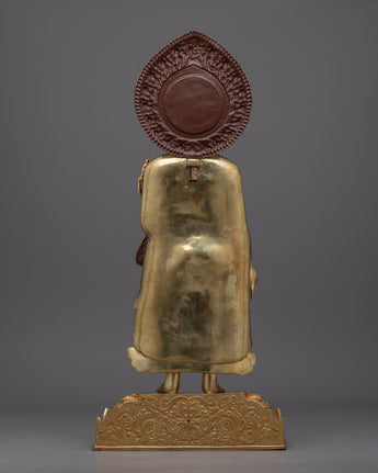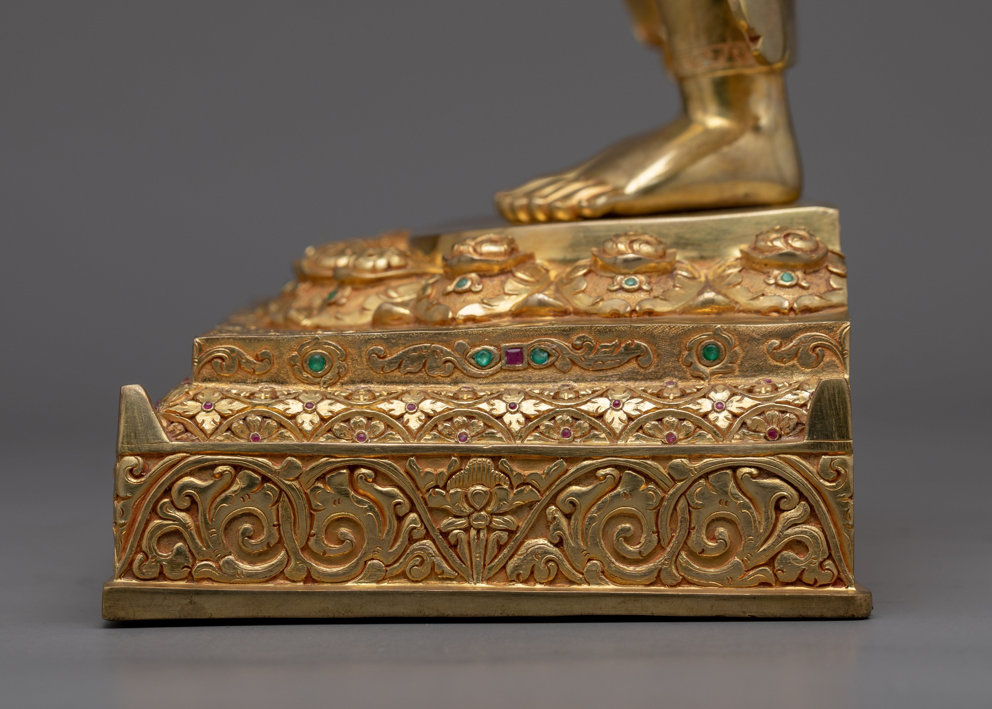 This wonderful Siddhārtha statue, which was expertly created from 24K gold-gilded copper, has a base that is 9 inches wide and stands an amazing 20.4 inches tall. This sculpture is the ideal addition to any meditation area, shrine, or house because of its excellent artistry and painstaking attention to detail.