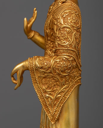 Stately Dipankara Buddha Statue | Gold-Gilded Copper Sculpture