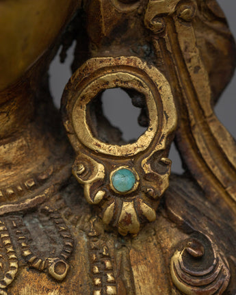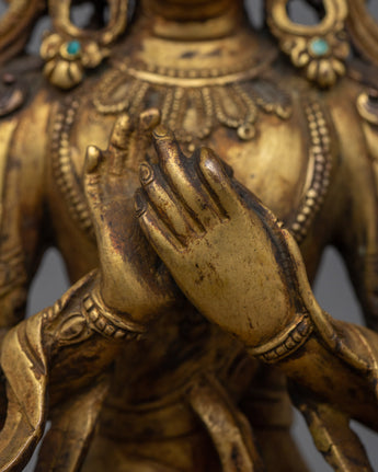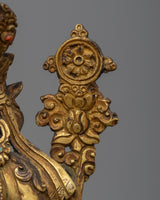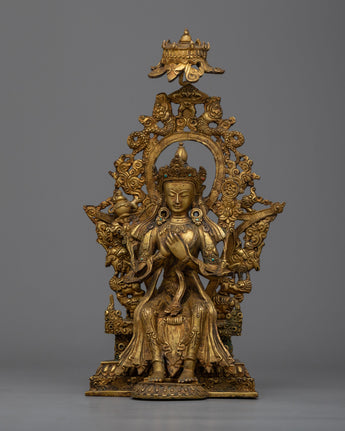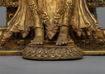 The statue's robust copper body is coated with a layer of 24K gold gilding that adds to its magnificence. The antique finish enhances the overall looks, perfectly encapsulating Termatree's commitment to exceptional craftsmanship. Allow this manifestation of the Future Buddha to lead you to enlightenment and wealth.