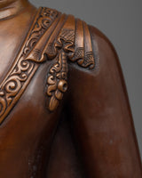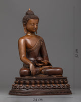 The Historical Gautama Buddha Statue represents knowledge and enlightenment since it captures the calm presence of the historical Gautama Buddha. This masterpiece, which has a body of oxidized copper, exudes serenity and grace and invites a deep sense of inner peace. The Gautama Buddha Statue is 12.5 inches tall with a secure 9.4-inch base, and it enchants everyone who sees it with its profound aura. Feel strongly connected to the Buddha's timeless teachings as you look into his compassionate features and calm demeanor.