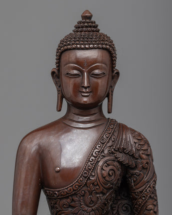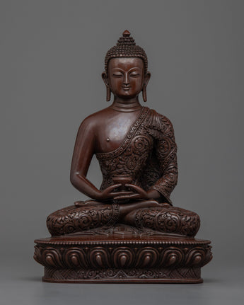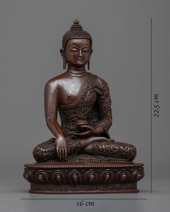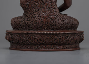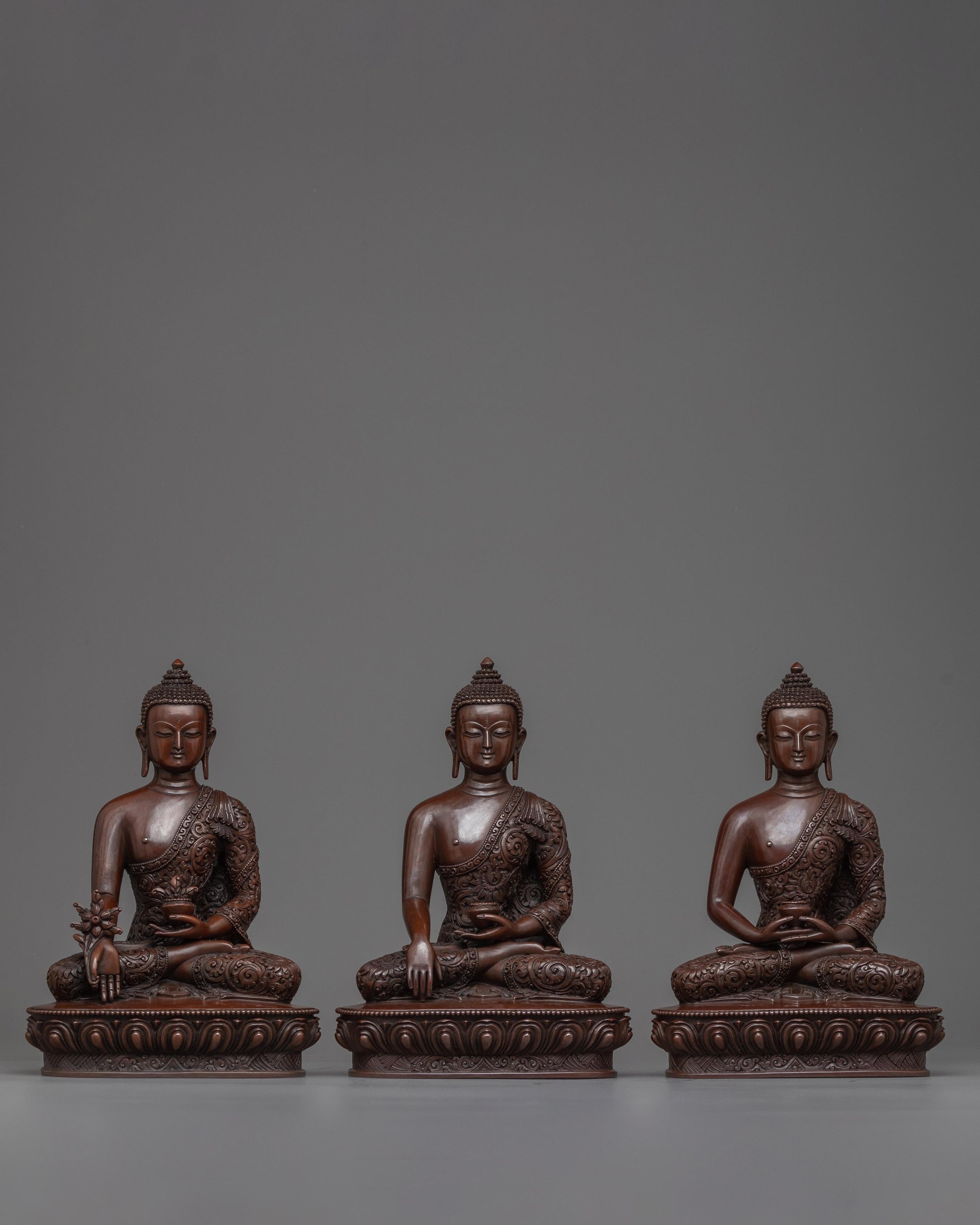 With our one-of-a-kind Three Wise Buddhas statue, you can immerse yourself in Buddhism's profound teachings. Standing 9.6 inches tall and meticulously carved, this oxidized copper artwork depicts the essence of Shakyamuni, Amitabha, and the Medicine Buddha. Each Buddha, precisely sculpted by our talented Nepalese artisans, adds a distinct facet of Buddhist teachings to your environment.