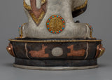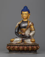 Our 12.9" Amitabha Buddha Figure, skillfully handcrafted by talented Nepalese artisans, will improve your spiritual environment. A copper body with 24K gold gilding, silver plating, and acrylic paints that highlight the deity's expressive face characteristics make up this stunning sculpture. Our artists use the time-tested lost wax casting technique, producing work of unrivaled quality and exquisite detail. This Buddha statue is a wonderful option for home décor, altarpieces, or as a special present that promotes spiritual growth and cultural awareness. Its dimensions are 33 cm in height and 24 cm at the base.
