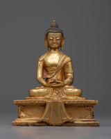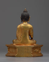 Our Triad of Enlightenment set, 3 Buddha images, embodies the beauty of Buddhist teachings and blessings. Each of the three sculptures, expertly carved and embellished with 24k gold gilding on a robust copper body, stands as a monument to the important responsibilities Bhaisajyaguru (Medicine Buddha), Shakyamuni, and Amitabha Buddha play in the lives of devotees and seekers alike.