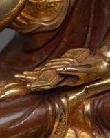 This magnificent monument comes from the heart of Nepal, a testament to the talented hands of artists. It's meticulously fashioned from oxidized copper and embellished with bright 24k gold gilding, lit up by beautifully hand-painted acrylic accents. When you invite this incarnation of wisdom and compassion into your home, you are receiving the collective blessings of Tsongkhapa and his disciples, who will guide you on your spiritual journey.