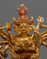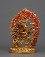 This intricate 24k gold statue features Twelve-Armed Chakrasamvara with his consort Vajravarahi, representing the power of divine love. Crafted from the finest materials and with exquisite detail, this statue is perfect for those seeking to bring a spiritual element to their home or collection.