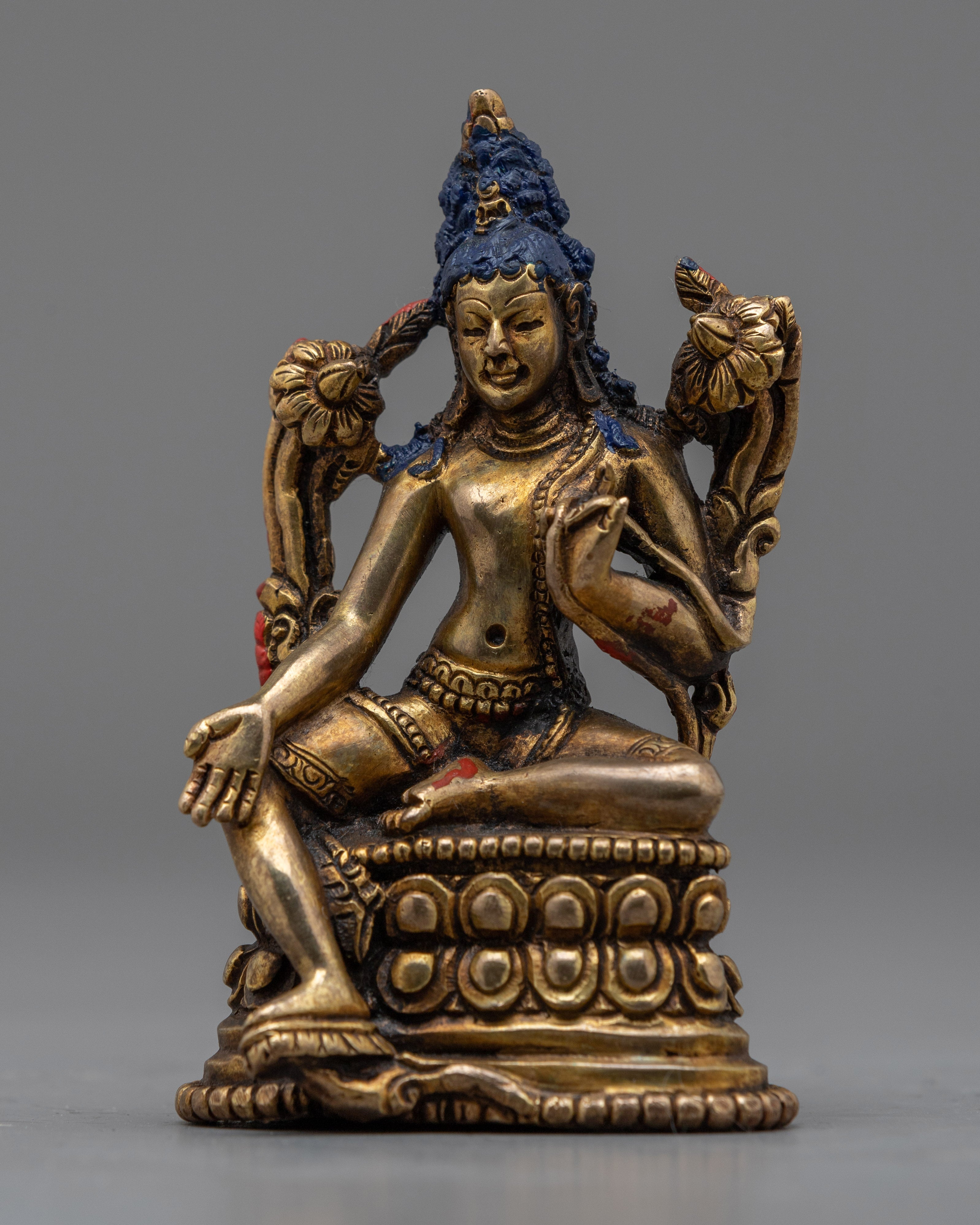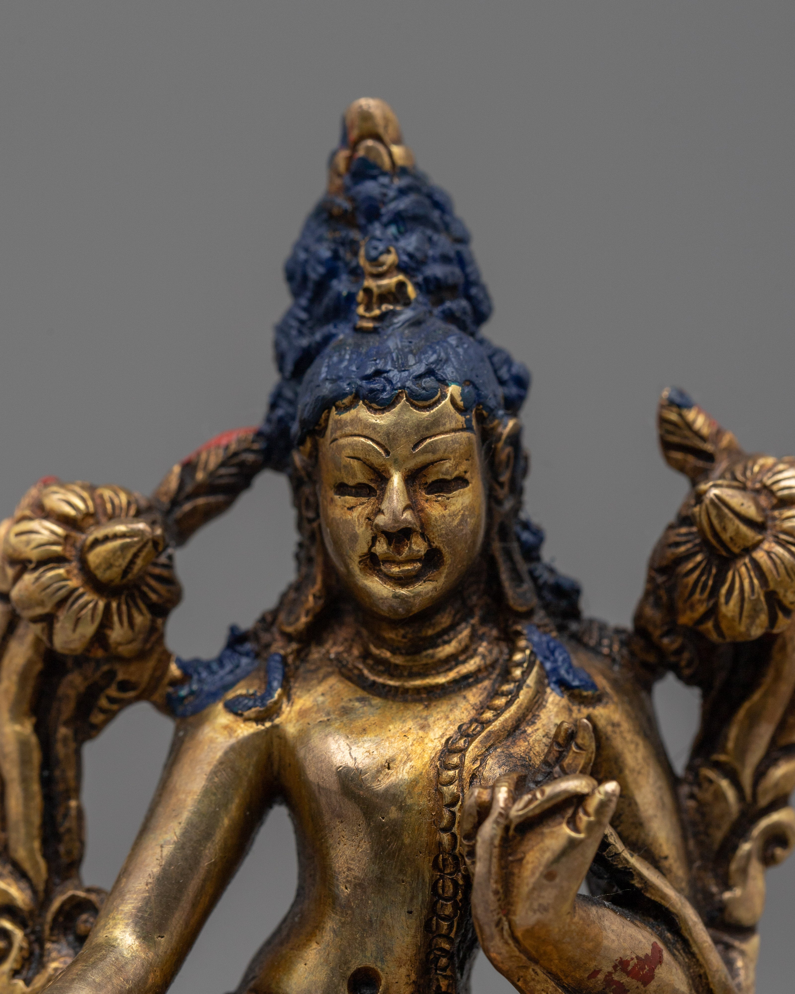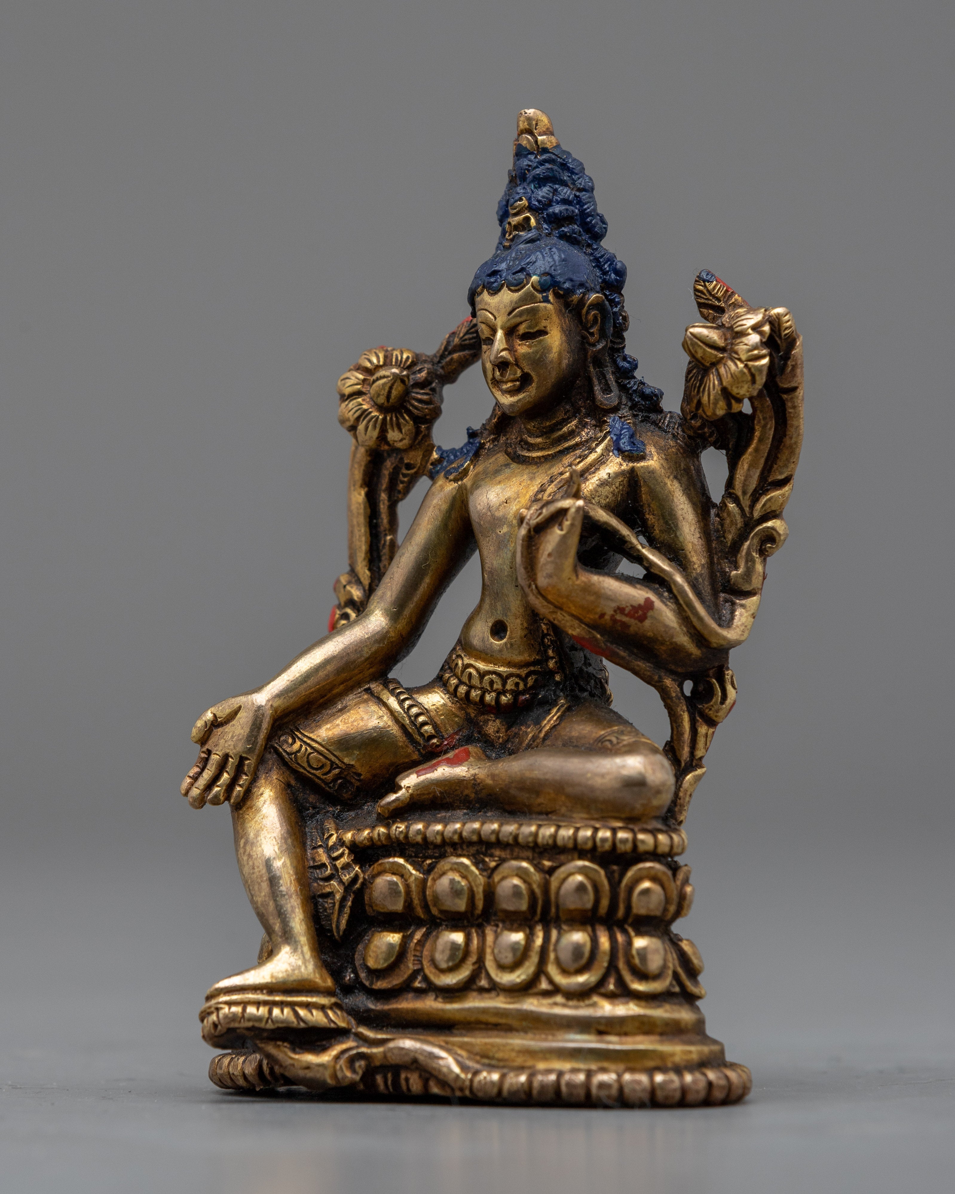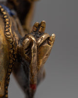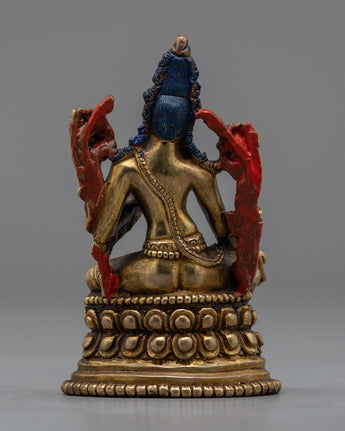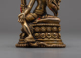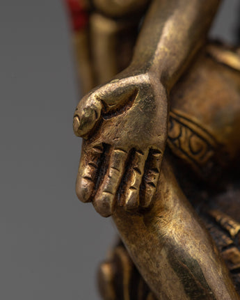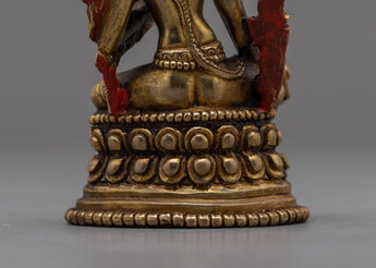 The Two-Arm Lokeshwor Statue, measuring 3.5 inches in height and 2.2 inches at the base, invites you to set off on a compassionate and benevolent path. The work of art, which is made entirely of copper and has thin layers of 24K gold gilding all over it, radiates a spirit of spiritual grace and ageless compassion. The statue's heavenly presence is enhanced by the antique finish, which offers a hint of rustic appeal.