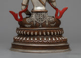 Presenting the handmade statue of the bodhisattva of purity from Tibetan Buddhism, the Vajrasattva. This monument, which was painstakingly made by hand with great care and skill, is a witness to the profound spiritual practice of cleansing. The combination of acrylic and gold paints on an oxidized copper body plated in silver produces an enthralling look that emphasizes the calm and dignified manner of Vajrasattva.