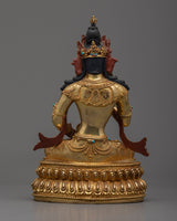 With our painstakingly carved statue to chant Vajrasattva Mantra Short, you can go on the path of inner transformation. Vajrasattva, known as the embodiment of purity and cleansing in Buddhist traditions, assists practitioners in eliminating spiritual obstructions and bad karmic residues. This statue, made of genuine copper and embellished with bright 24k gold gilding and magnificent acrylic paints, is more than just a work of art; it is a sign of commitment and inner regeneration.