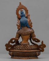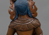 The Vajrasattva Mantra Text Practice Statue was carved by hand in our studio using the skills handed down to us for years. We molded the figurine using oxidized copper, intricately carved to accentuate the statue's intricacies. In Tibetan, Vajrasattva is sometimes referred to as Dorje Sempa. The deity is perched on a moon disc on a lotus, clutching a vajra in his right hand and a bell in his left. He had a contented look on his face. This figure can be used in various Buddhist rituals and meditation exercises.