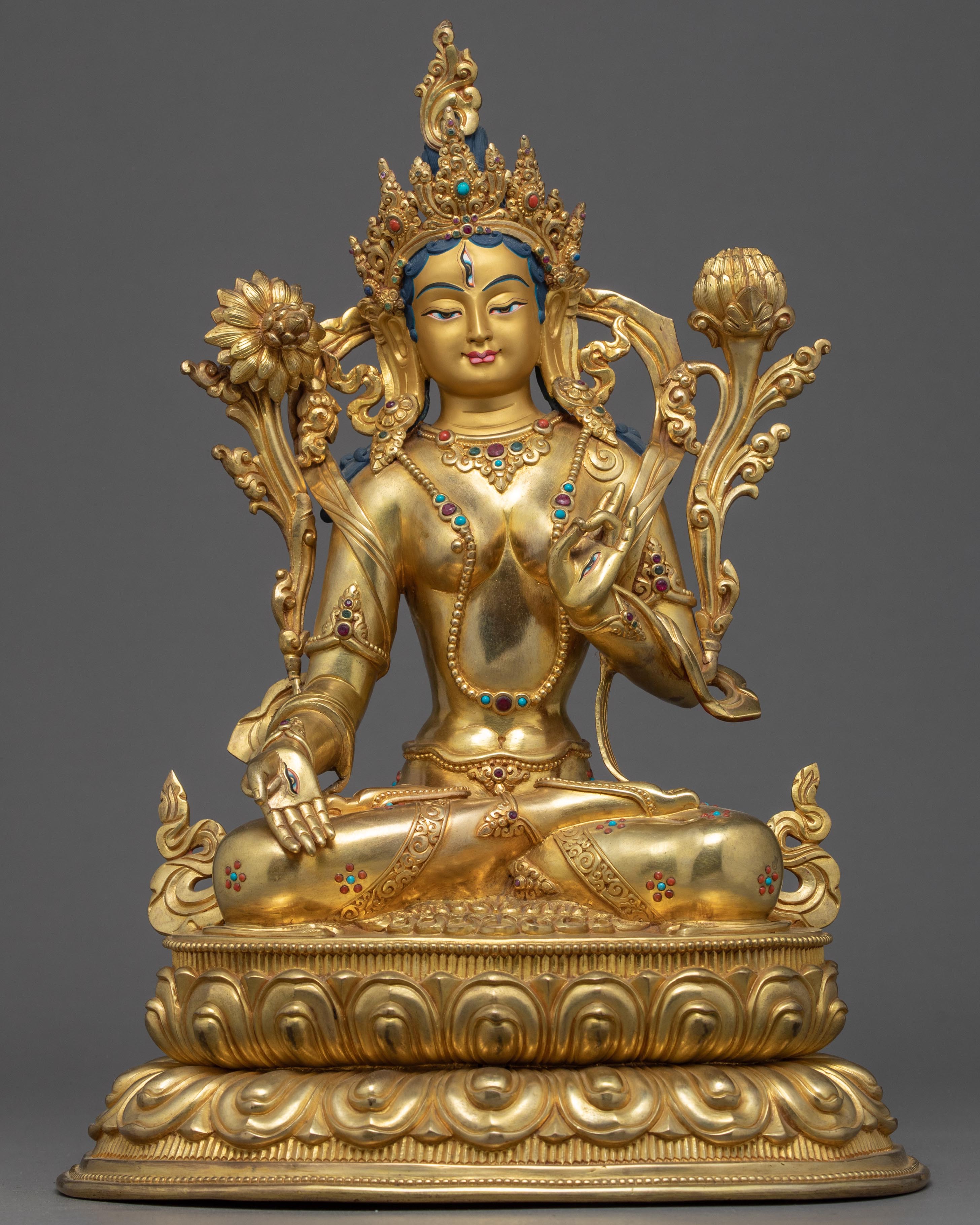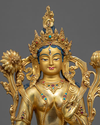 Handcrafted Gold Gilded Statue of The White Tara Buddha