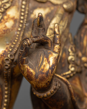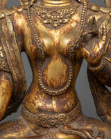 White Tara in Antique Finish | 24K Gold Gilded Copper Statue
