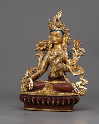 Hand-crafted 24k Gold Gilded Long Life Deity of White Tara Statue