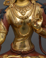 24k Gold Gilded, Female Goddess White Tara Statue, Long Life Deity
