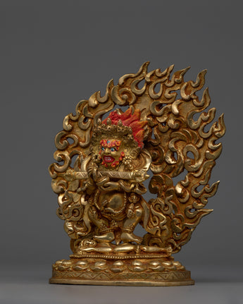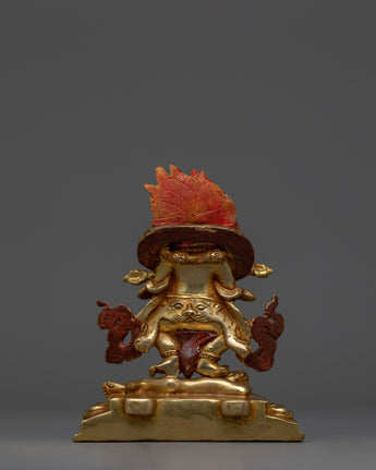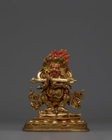 Wrathful Protector Sakya Mahakala 24K Gold Gilded Altar Sculpture | 5.9” Buddhist Deity Sculpture