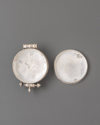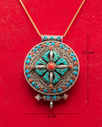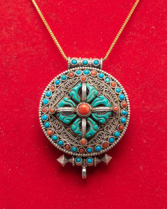 Tibetan Bishwa Bajra Ghau Box Locket | Silver Amulet with Turquoise and Coral