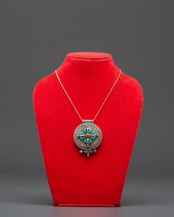 The Bishwa Bajra Ghau Box Locket is not only a striking piece of jewelry but also a profound spiritual amulet crafted to infuse your life with positive energy and protection. Measuring 5.5cm in height and 4cm in width, it’s perfectly sized for daily wear or to be carried as a personal talisman. Forged from silver, this locket is adorned with vibrant artificial turquoise and coral stones, each chosen for their spiritual properties as well as their captivating colors. Turquoise is traditionally revered for its protective powers, shielding you from negativity and fostering tranquility, while coral is known to stimulate vitality, emotional healing, and balance. These stones work in harmony to promote overall well-being and serenity.