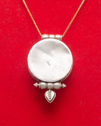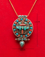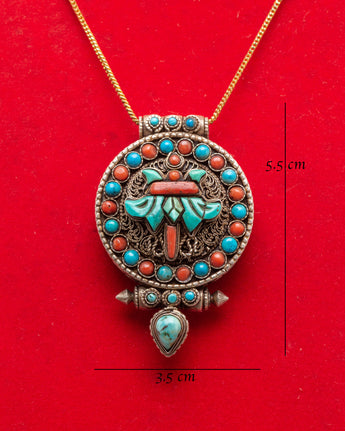 Buddhist Ghau Box Amulet | Silver Pendant with Coral & Turquoise