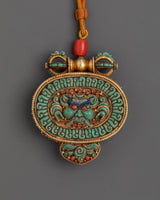 Buddhist Ghau Locket | Handcrafted Amulet with Turquoise Stone