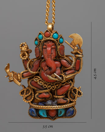 Coral Ganesh Locket | Hindu Deity Jewelry for Blessings
