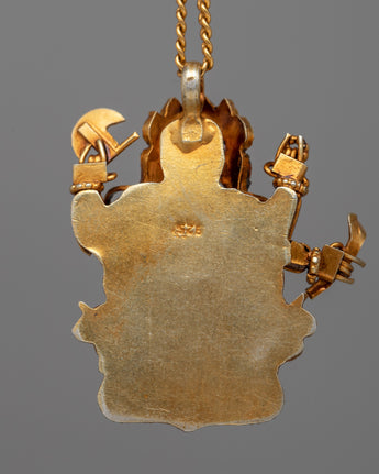 A Buddhist locket is a piece of jewelry designed to hold a small prayer, mantra, or image related to Buddhist practice. The locket may have a design or image of a Buddhist deity, such as the Buddha, or an image of a sacred symbol, such as the lotus flower. It is typically worn as a talisman to remind the wearer of their spiritual path and to offer protection. Some Buddhist lockets are also used as a form of religious devotion and are frequently given as gifts to friends and family members to provide them with spiritual support and blessings.