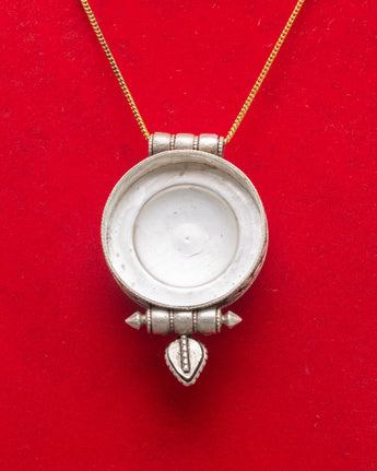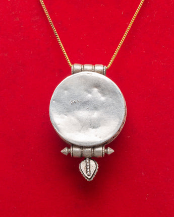 Dharma Wheel Silver Ghau Pendant | Spiritual Locket for Protection and Healing