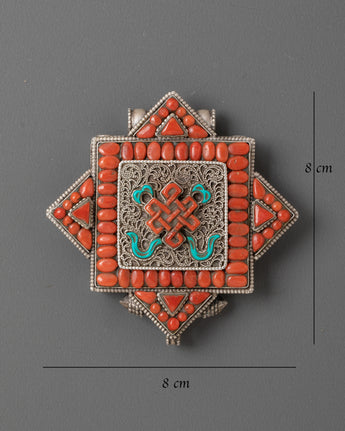 Handmade Endless Knot Ghau Box Locket | Sacred Tibetan Pendant